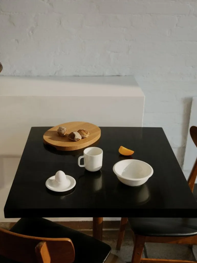 Muggen Raami från Iittala är perfekt för servering av både kaffe eller te. Iittalas middagskollektion Raami som lanserades 2019 designades av Jasper Morrison – en av sin tids främsta industridesigners. Morrison hämtade inspiration till Raami från känslan av matservisens förmåga att samla människor och att skapa en god atmosfär vid bordet. Namnet Raami – finska för ram – syftar på sättet som en servis kan rama in våra gemensamma ögonblick och ge plats för nya, eviga minnen. Med element av keramik, glas och trä har varje del i kollektionen sin egen karaktär: tillsammans formar delarna en sömlös enhet, såsom en familj eller ett kompisgäng. Med sin tidlösa, familjära känsla skapar Raami-kollektionen en trivsam atmosfär till alla tillfällen, både till vardag och fest.