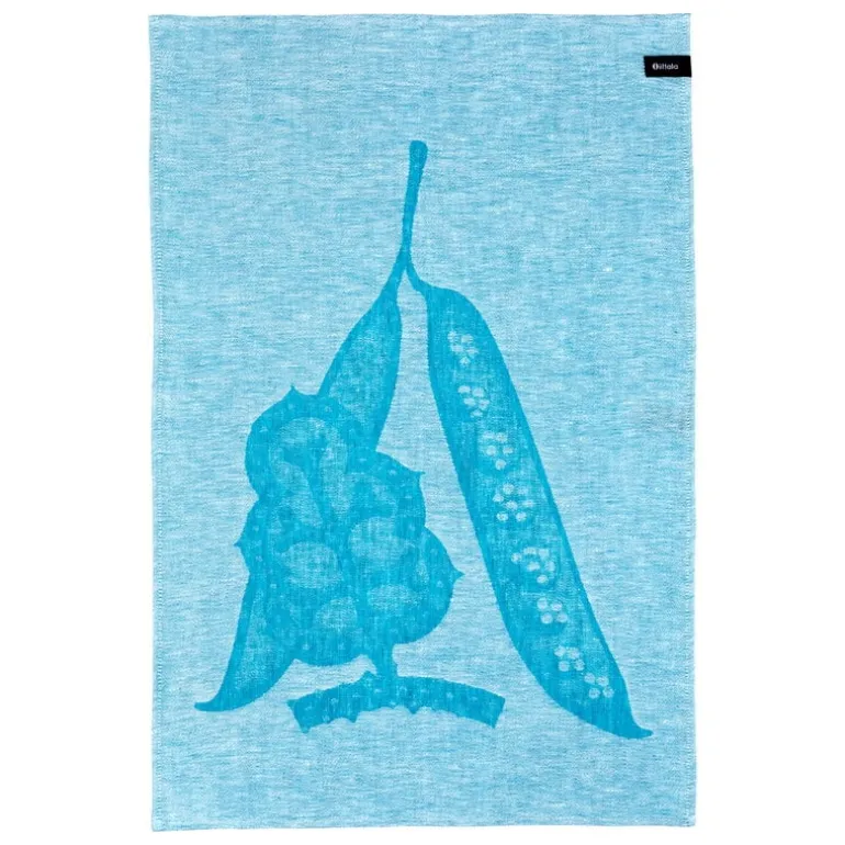 Kökshandduken Taika Sato från Iittala är prydd med en design som skapats av Klaus Haapaniemi, som låtit sig inspireras av skördetiden och sin egen trädgård. Linnehandduken kan användas till händerna eller till att torka disken i köket, alternativt kan du låta degar och andra bakverk jäsa under den.