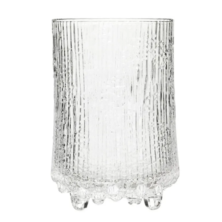Ultima Thule highball-glas är en del i Iittalas ikoniska serie glas som Tapio Wirkkala skapade 1968. Inspirationen till kollektionen har hämtats från de smältande vårisarna i norra Finland. Ultima Thule framställs med den så kallade isglastekniken, som Wirkkala och Iittala tog fram tillsammans. Formerna imiterar naturen och ändras gradvis allteftersom det smälta glaset bränner ytan i träformarna. 1969 valde det finska flygbolaget Finnair att använda Ultima Thule till sin nya rutt mellan Helsingfors och New York. De har än idag kvar glasen i Business Class. Ultima Thule kristalliserar kraften i finsk glasdesign och den distinkta klassikern bidrog även till Iittalas internationella genomslag. Ultima Thule har kommit att bli en av Iittalas mest populära glaskollektioner, och demonstrerar tydligt Wirkkalas synsätt, att det är de enkla objekten som kräver störst arbete.