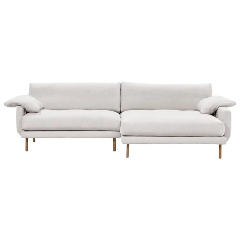 Interface’s Bebé-soffa med chaise longue inbjuder till omedelbar avkoppling. Designad av Aino Michelsen, erbjuder Bebé-soffans mjuka linjer, smala detaljer och djupa sittplatser en trevlig miljö för både avslappnat sittande och socialt umgänge. Tunna ben stöder ramen och de mjuka, molnlika sittdynorna fyllda med fjädrar, vilket ger Bebé-soffan ett lätt och luftigt utseende. De avslappnade dekorativa kuddarna balanserade på armstöden fulländar den sympatiska stämningen. Bebé-soffan, tillverkad i Finland, är ett tidlöst vackert tillskott för både privata vardagsrum och offentliga utrymmen.