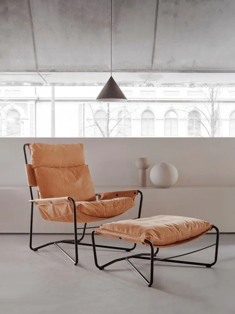 Interface’s Bug pall ser oemotståndligt inbjudande ut. Designad av Aino Michelsen, har Bug-pallen en lätt, graciös ram på vilken den plyschiga fjäderfyllda sitsen vilar bekvämt. Alla klädselkomponenter är avtagbara och utbytbara, så pallen är både lätt att underhålla och hållbar. Högkvalitativt läderklädsel ger en dos av jordnära harmoni till interiören, och den naturliga patinan lägger till karaktär med åren.