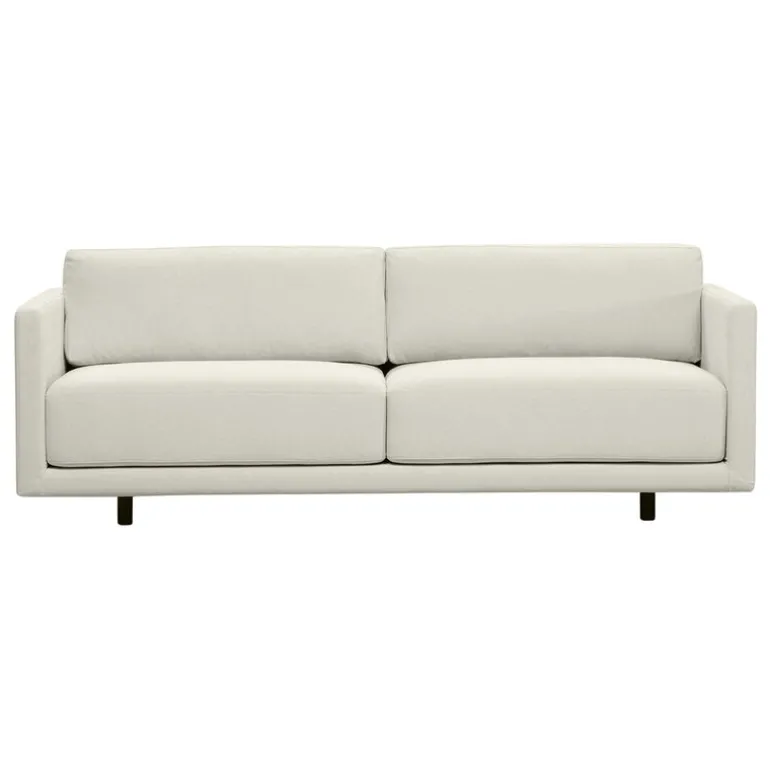 Den här Nova-soffan är klädd i tyget Story från Ateljé Lauritzon. Tyget, som består av en bomullsblandning, kan användas både i bostäder och offentliga miljöer. Att överdragen är avtagbara är något som i hög grad underlättar rengöring och skötsel. Tack vare sitt nedtonade utförande kommer Nova-soffan väl till rätta oavsett inredningsstil – den smälter naturligt in i minimalistiska sammanhang, samtidigt som de rena linjerna utgör en solid grund när den placeras i mer överdådigt eklektiska miljöer. Liksom alla andra soffor från Interface tillverkas Nova i Finland.