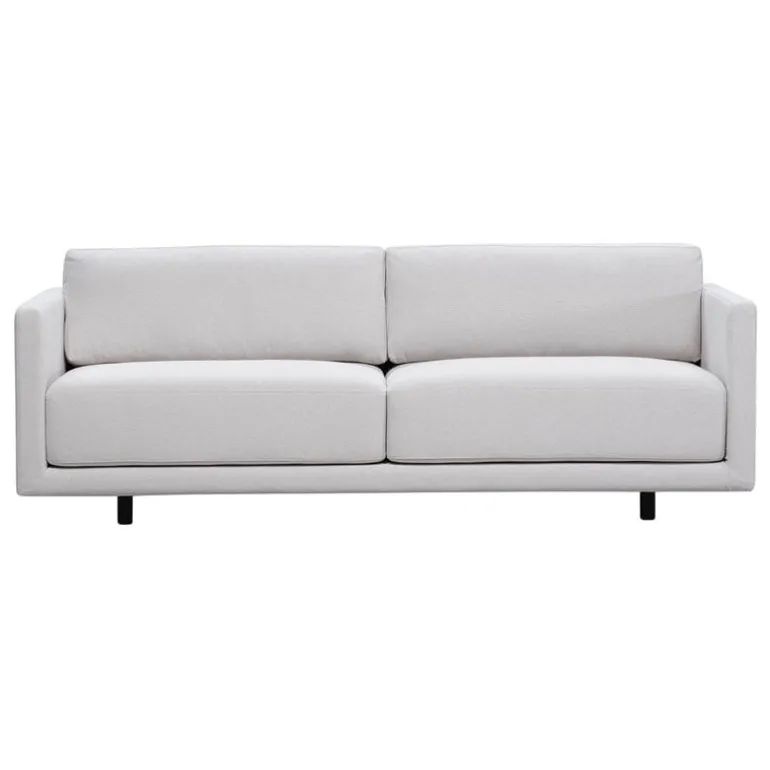 Den här Nova-soffan är klädd i tyget Story från Ateljé Lauritzon. Tyget, som består av en bomullsblandning, kan användas både i bostäder och offentliga miljöer. Att överdragen är avtagbara är något som i hög grad underlättar rengöring och skötsel. Tack vare sitt nedtonade utförande kommer Nova-soffan väl till rätta oavsett inredningsstil – den smälter naturligt in i minimalistiska sammanhang, samtidigt som de rena linjerna utgör en solid grund när den placeras i mer överdådigt eklektiska miljöer. Liksom alla andra soffor från Interface tillverkas Nova i Finland.
