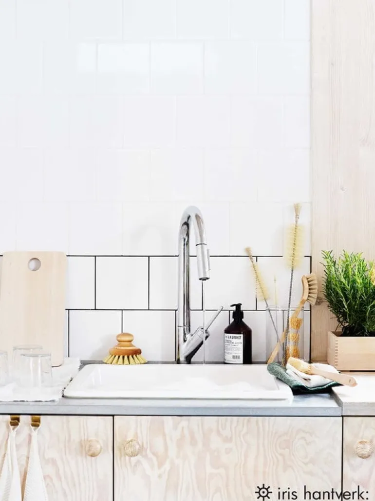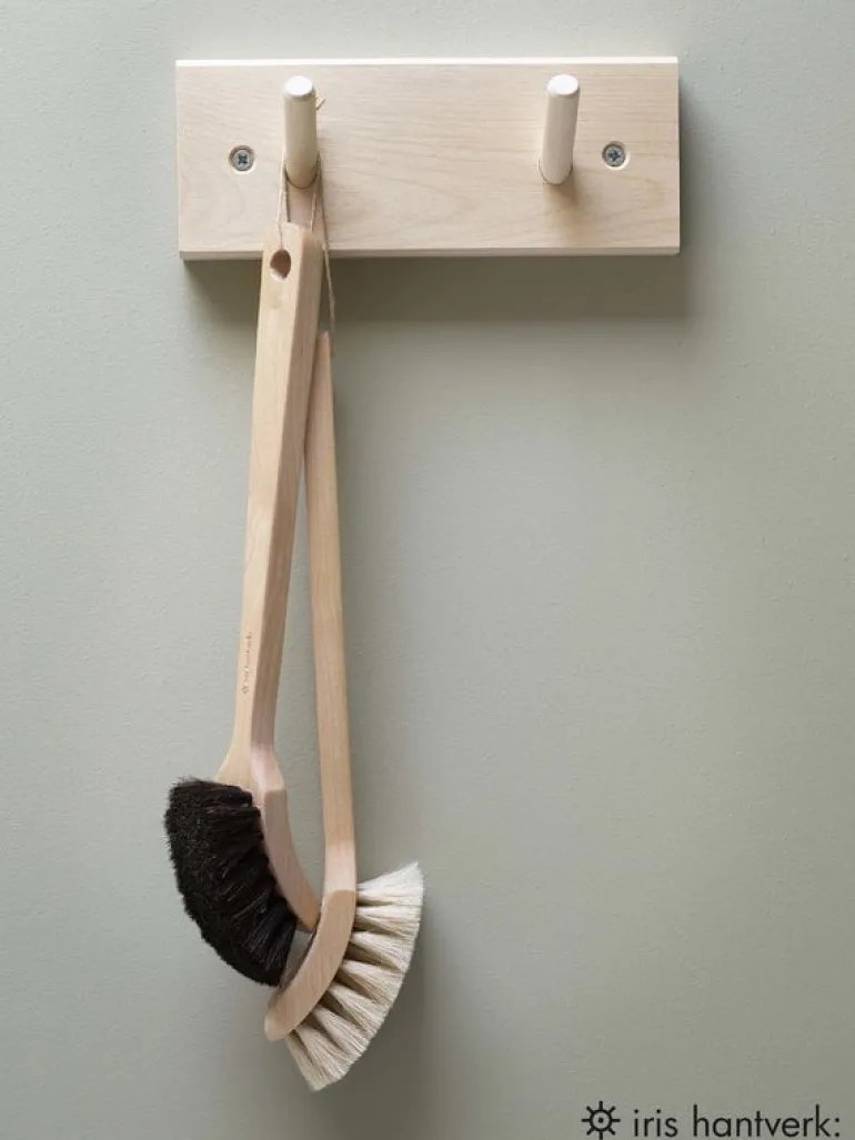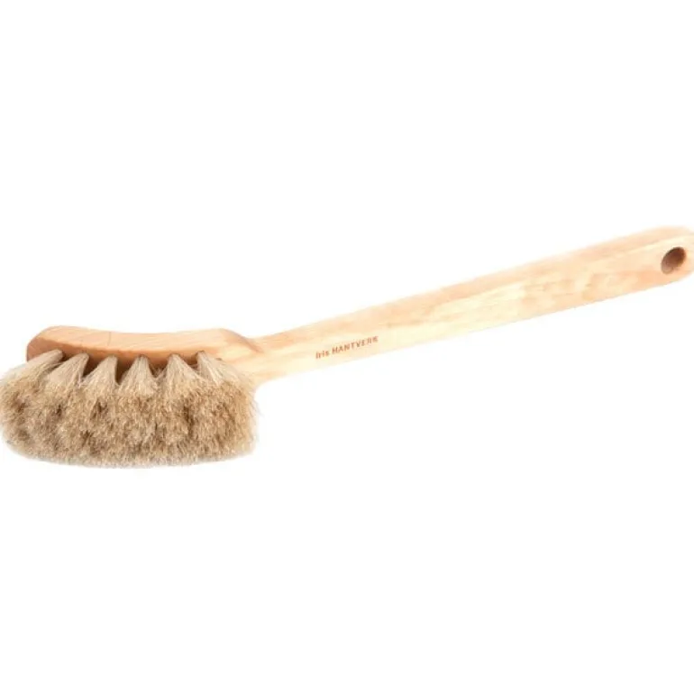 Iris Hantverks diskborste kan även rengöra vinglas med rundad botten tack vare det böjda handtaget. Borsten är handgjord av oljebehandlat björkträ och av robust men följsamt tagel.