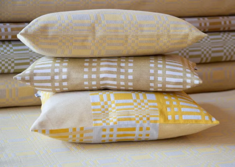 Johanna Gullichsens kuddfodral Doris är en modern tolkning av gamla finska vävtraditioner. Kuddfodralet har en praktisk dragkedja och ingår i Johanna Gullichsens Normandie-kollektion som hämtar inspiration från en era med lyxiga oceanångare och ett makligt, elegant sätt att resa på. Med sin tjocka dubbelsidiga bomull stoltserar Normandie-kollektionen med grafiska mönster i skandinaviska nyanser – designade och vävda i Finland.
