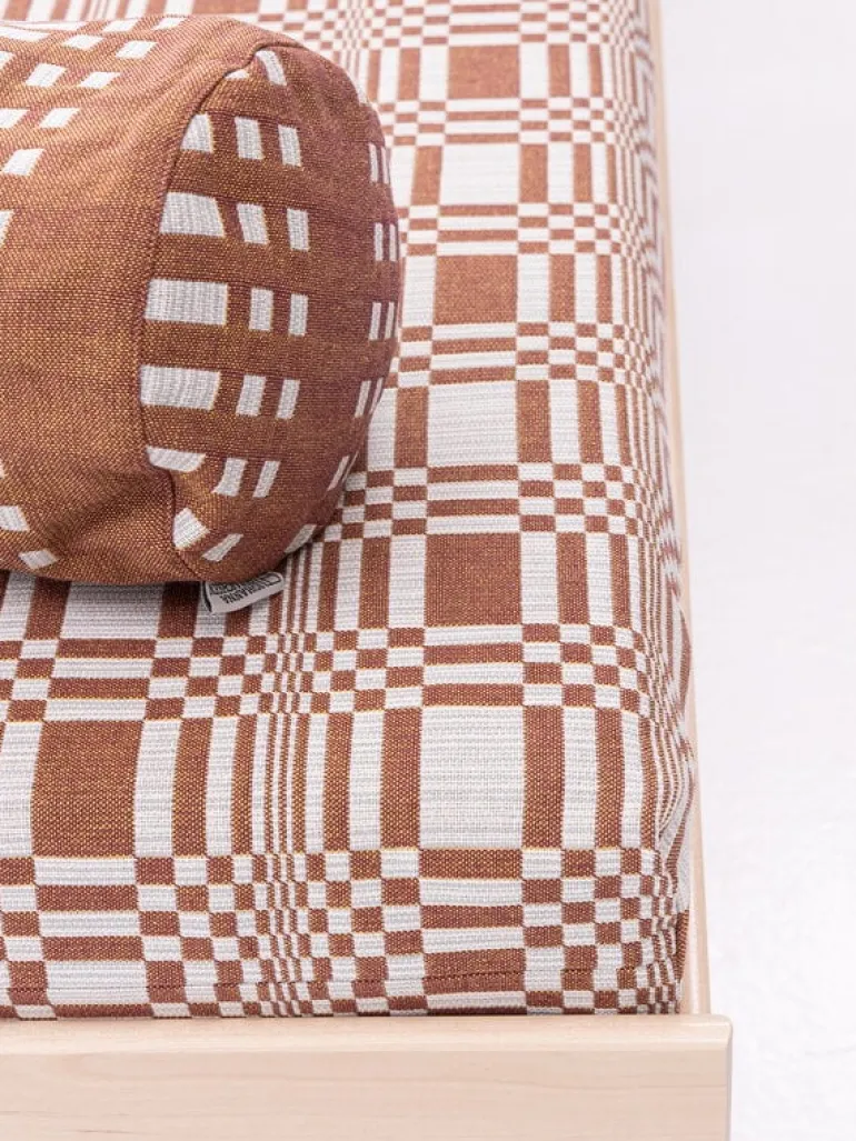 Johanna Gullichsens madrassöverdrag Doris är en modern tolkning av gamla finska vävtraditioner. Madrassöverdraget på 90 x 200 cm är särskilt utformat för Aalto dagbädd 710 från Artek och kan kombineras med t.ex. Familon Master Safe skummadrass. Madrassöverdraget har en dragkedja på långsidan.