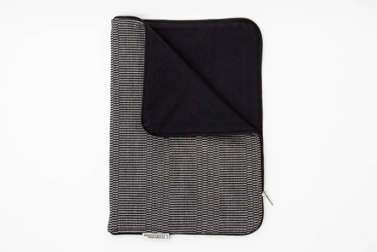 Laptop-väskan ingår i Johanna Gullichsens Normandie-kollektion som hämtar inspiration från en era med lyxiga oceanångare och ett makligt, elegant sätt att resa på. Normandie-kollektionen består av tjock, dubbelsidig bomull med grafiska mönster i skandinaviska nyanser – designade och vävda i Finland.