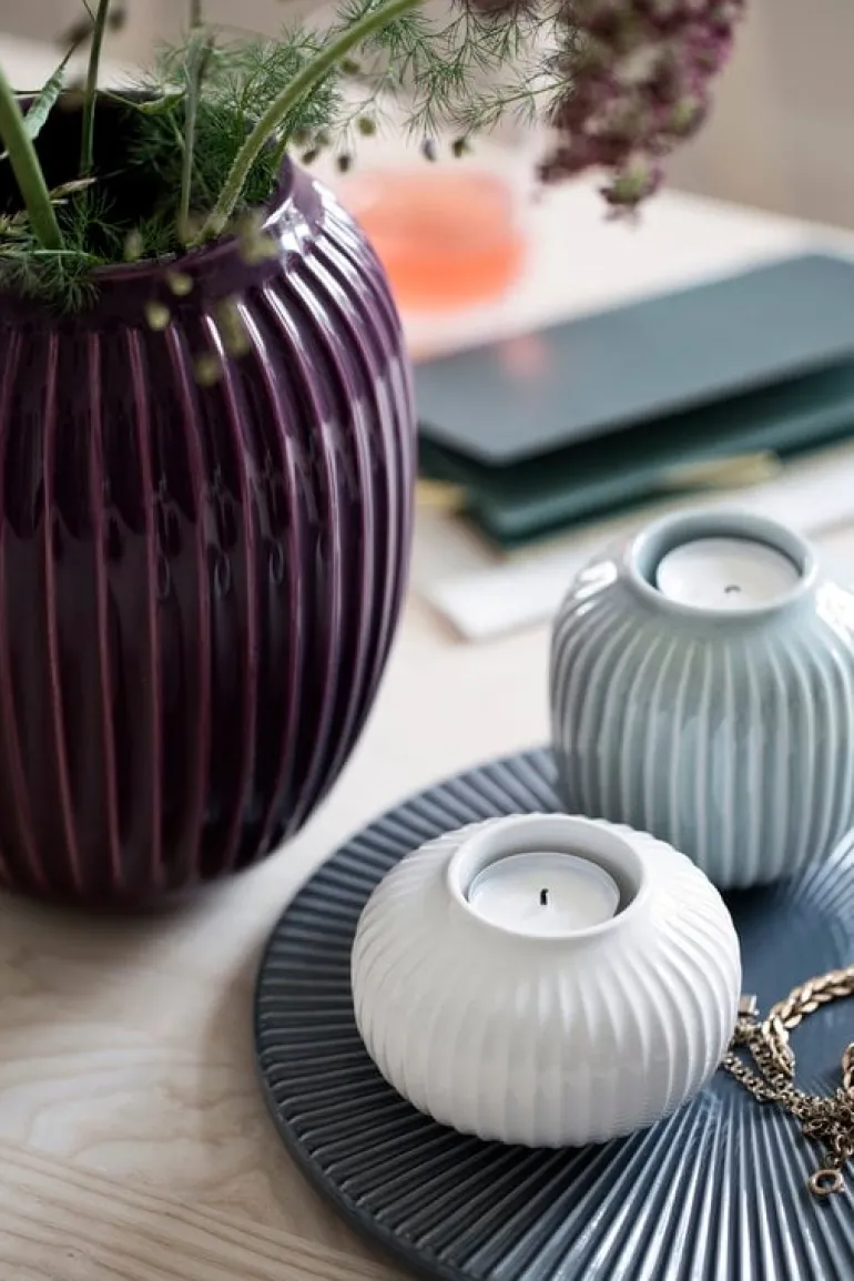 Värmeljushållaren Hammershøi, som designats av Hans-Christian Bauer för Kähler, ingår i en vacker keramikkollektion med namn efter konstnären och keramikern Svend Hammershøi. Han arbetade för Kähler från 1893 fram till sin död – hans stora vaser och skålar smyckades ofta med enkla vertikala fåror. Samma dekorativa mönster upprepas i den tidlösa Hammershøi-kollektionen som är perfekt för både vardag och fest.