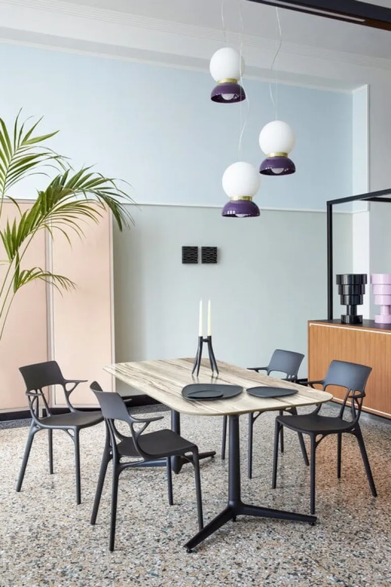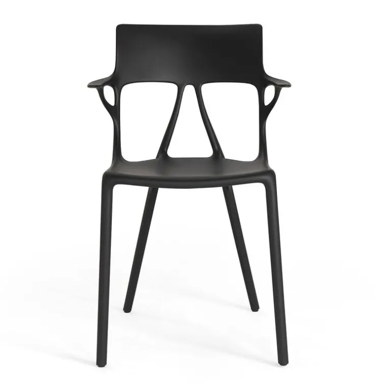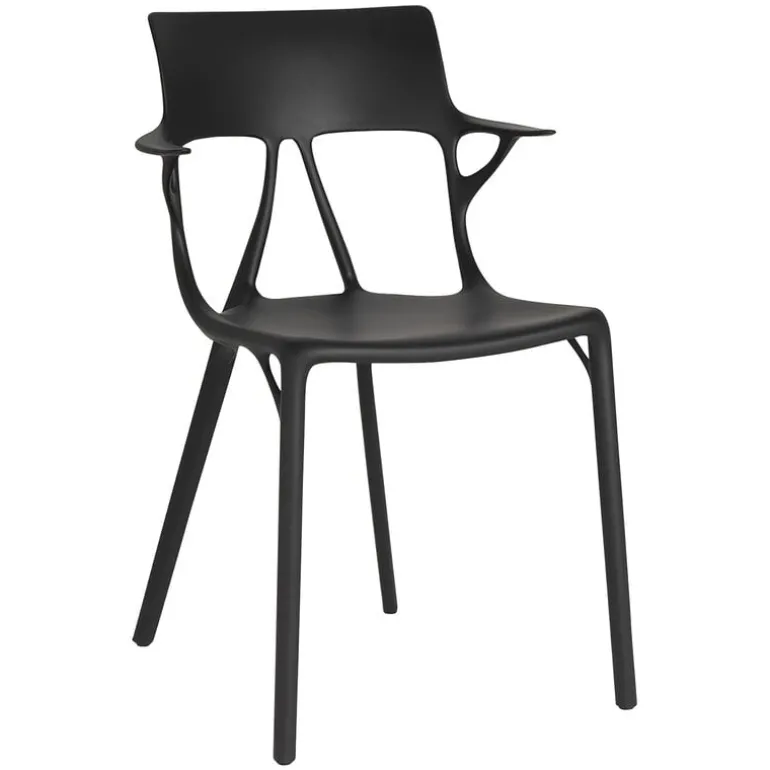 A.I. från Kartell är en vacker och genialiskt designad stol som helt och hållet är tillverkad av återvunnet material. A.I. (artificiell intelligens) är, som namnet antyder, baserad på ett samarbete mellan människa och maskin: den formsprutade stolen, formgiven av Philippe Starck, skapades med hjälp av artificiell intelligens, och tack vare det kunde både produktionsutsläpp och avfallsmängd hållas nere på ett minimum. Den innovativa och tämligen imponerande stolen kan även användas utomhus.