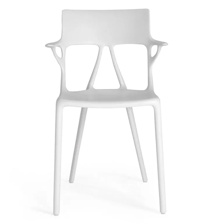 A.I. från Kartell är en vacker och genialiskt designad stol som helt och hållet är tillverkad av återvunnet material. A.I. (artificiell intelligens) är, som namnet antyder, baserad på ett samarbete mellan människa och maskin: den formsprutade stolen, formgiven av Philippe Starck, skapades med hjälp av artificiell intelligens, och tack vare det kunde både produktionsutsläpp och avfallsmängd hållas nere på ett minimum. Den innovativa och tämligen imponerande stolen kan även användas utomhus.