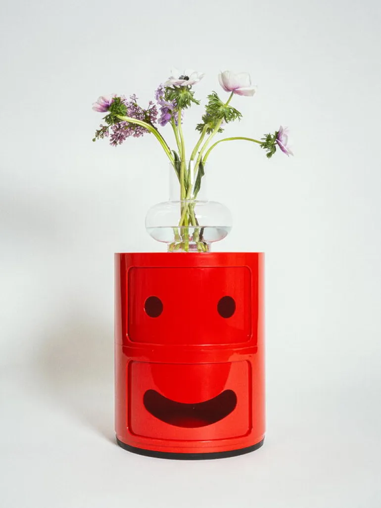 Förvaringsmöbeln Componibili från Kartell designades 1969 och är en designklassiker som fortsätter att charma. I Componibili Smile-serien har klassikern uppdaterats till dagens emoji-kultur med smileys designade av Fabio Novembre. Componibili Smile lämpar sig för olika användningsområden och passar perfekt i barnrummet. Den kan placeras i sovrummet, vardagsrummet, köket eller till och med i badrummet eller på balkongen. Componibili är formgiven av Anna Castelli Ferrieri.