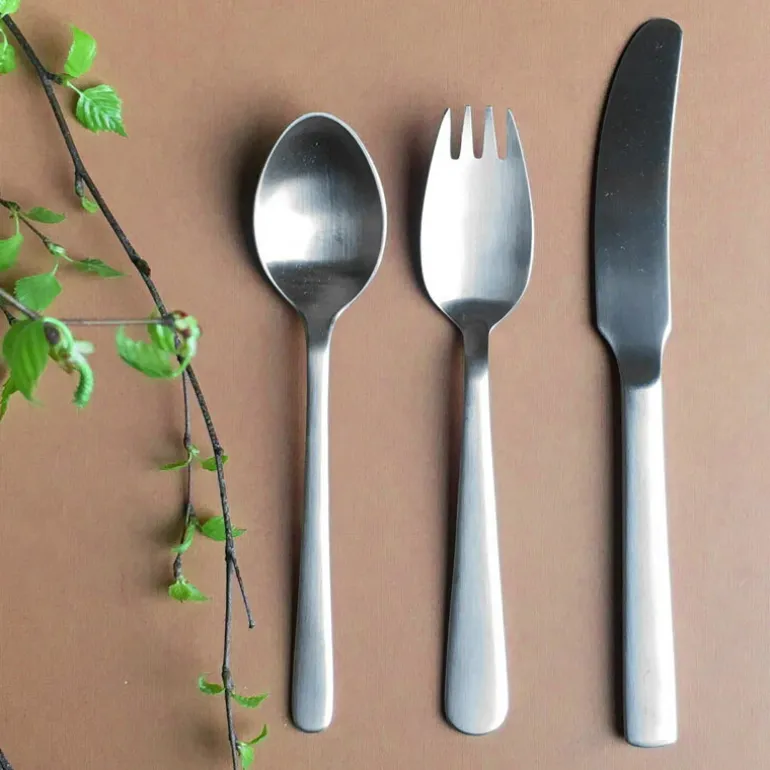 I Kay Bojesens barnbestickset Grand Prix ingår totalt 4 delar: en sked, en kniv, en kombinerad sked och gaffel och en robust bordstablett i kanvas med egen förvaringsficka för besticken. Besticksetet är tillverkat i polerat, rostfritt stål och är perfekt anpassat till små händer och små tallrikar.
