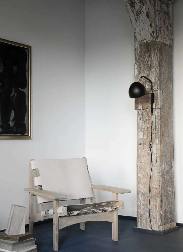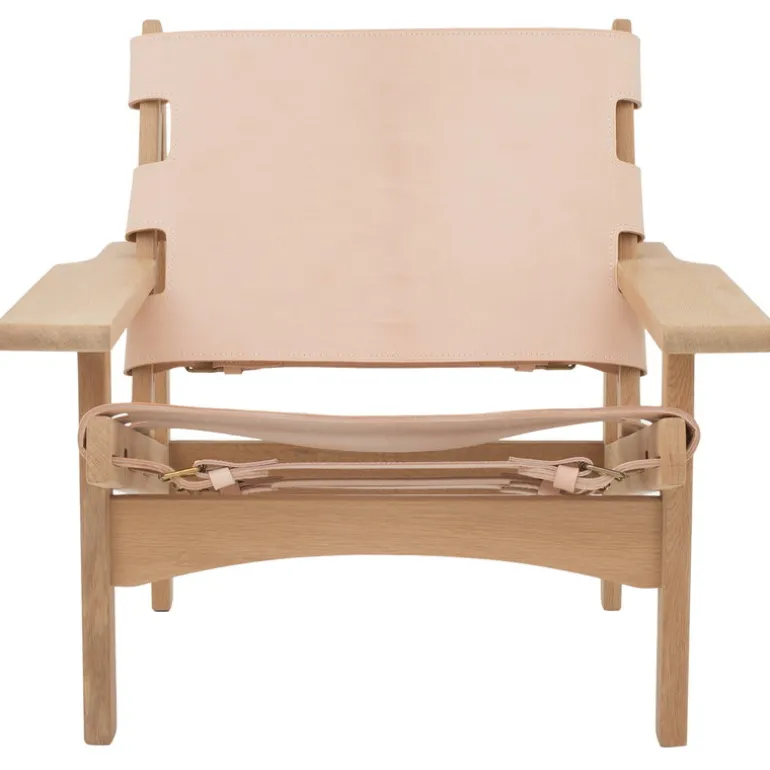 Klassik Studios Hunting Chair, formgiven av Kurt Østervig år 1960, har en robust ekram med sits och ryggstöd i sadelläder. Delarna i läder har spänts fast i ramen med remmar, vilket ger en stolen en intressant touch, och gör att det går att justera hur hårt sitsen ska dras åt. I Hunting Chair förenas atmosfären i traditionella jaktstugor med modernismens uppfriskande, experimentella inställning, som rådde under 1900-talets mitt.