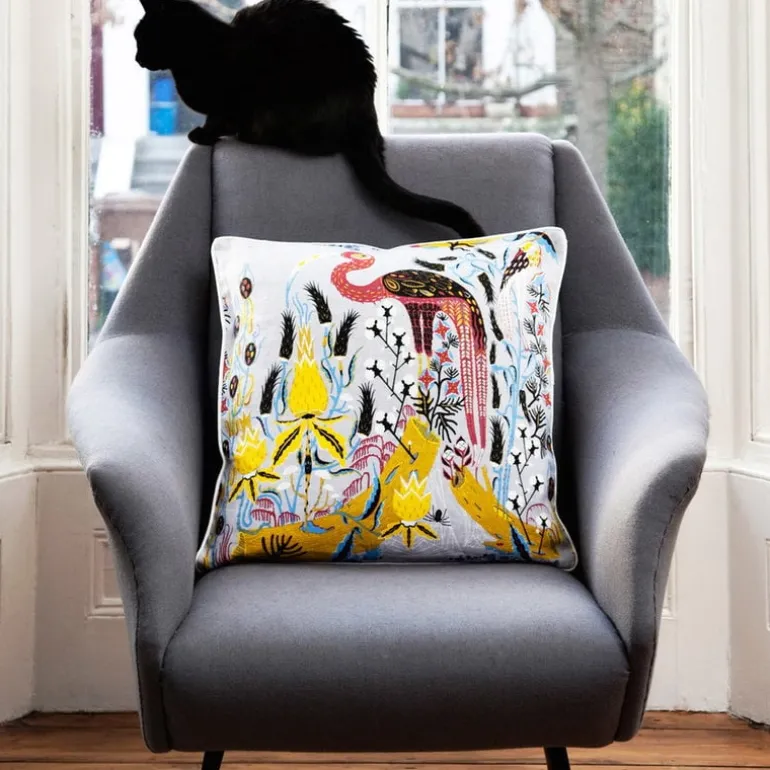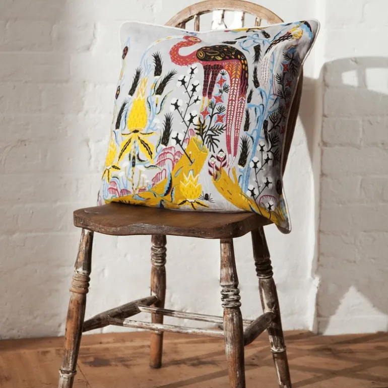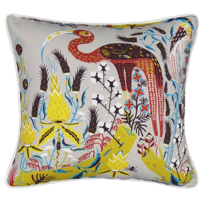 Klaus Haapaniemis Crane kuddfodral presenterar en stilig trana bland en frodig grupp blommor. Det vackra mönstret pryder båda sidorna av kuddfodralet, som har en dold dragkedja och är tillverkat i en blandning av bomull och linne.