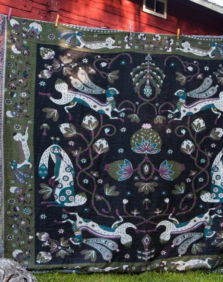 Illustratören och formgivaren Klaus Haapaniemi har i samarbete med designern Mia Wallenius skapat ett unikt sortiment av hem- och modetextilier, inspirerade av den nordiska naturen och finsk folklore. De vackra mönstren följer det traditionella och dekorativa hantverket, men stilen och metoden är moderna. De allra finaste naturmaterialen i kombination med de unika, detaljerade mönstren skapar en kollektion som verkligen är lyxig.