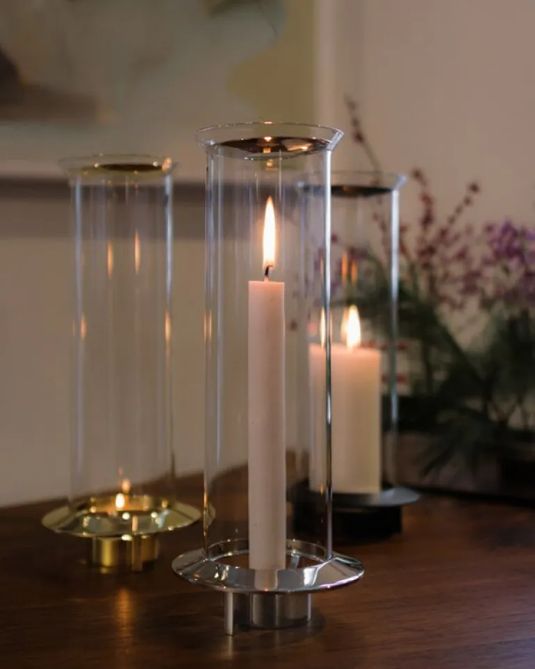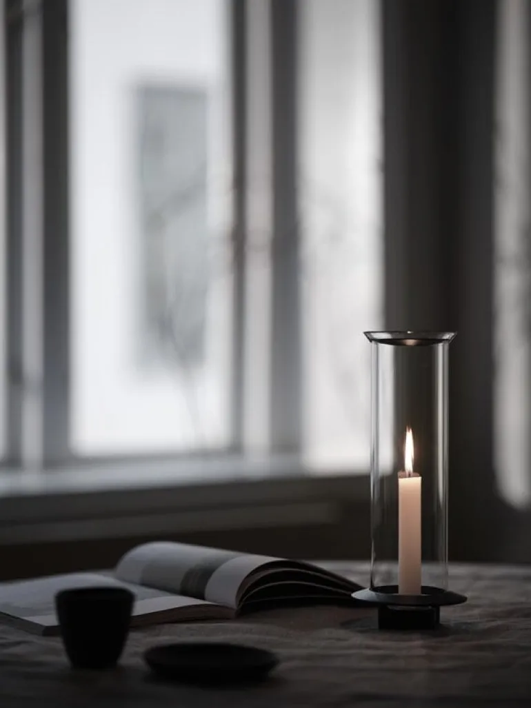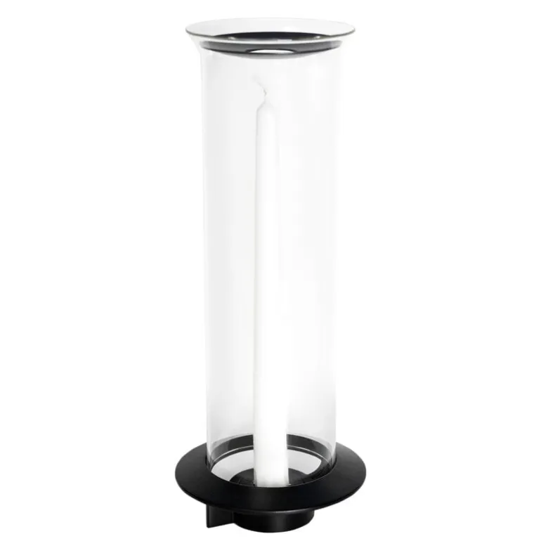 Klongs ljushållare Fyr är en förtjusande elegant och säker hållare för ett enskilt ljus, perfekt som utsmyckning på fönsterbrädet eller som mittpunkt i ett bordsarrangemang. Designduon Broberg & Ridderstråles vision var att konstruera en ljusstake som passade till både antikljus och värmeljus och som skyddade ljuslågan mot plötsliga luftströmmar med hjälp av ett elegant, strömlinjeformat glashölje. Ljusstaken Fyr kan även användas utomhus och kommer till sin fulla rätt tack vare den svarta, mattlackerade mässingsfoten med accenter som ger den en sofistikerad touch.