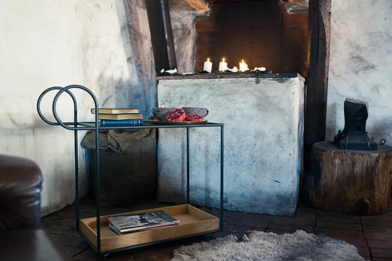 Juliusvagnens minimalistiska utseende gör den idealisk för att användas som sidobord, serveringsvagn eller förvaringsmöbel både hemma eller på kontoret. De ögleformade handtagen ger karaktär till den simpla strukturen tillsammans med den löstagbara lägre trähyllan vilken kan användas som en bricka. Juliusvagnen designades av svenska designduon Broberg & Ridderstråle.