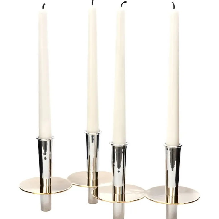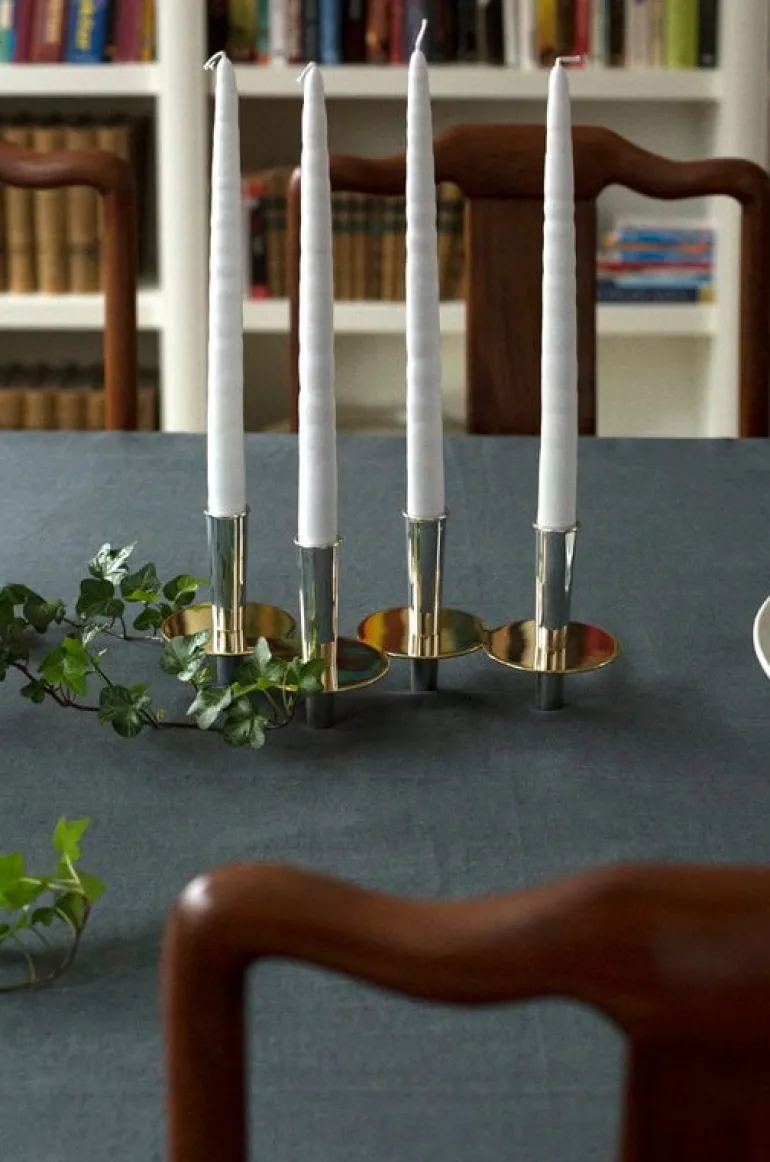 Ljusstaken Kluster av Klong skapar ett elegant kluster av fyra ljus. Ljusstaken, som designats av Filippa Reuterswärd, kännetecknas av en elegant, raffinerad design med spegelpolerad aluminium och mässingsytor som reflekterar färgerna och stämningarna i omgivningen. Klong är en iögonfallande detalj i festdukningen, men passar lika bra till vardags.