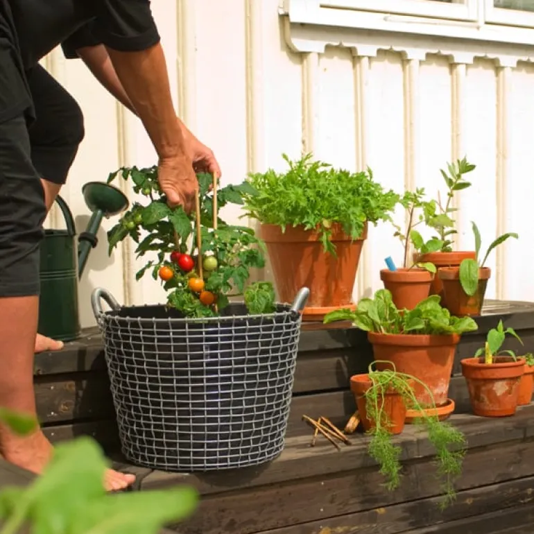Använd Korbo planteringspåse tillsammans med trådkorgen Classic 24 för att skapa en fantastisk såbädd till blommor eller till dina favoritörter. Påsen är gjord av polypropen som andas och rymmer 24 liter.