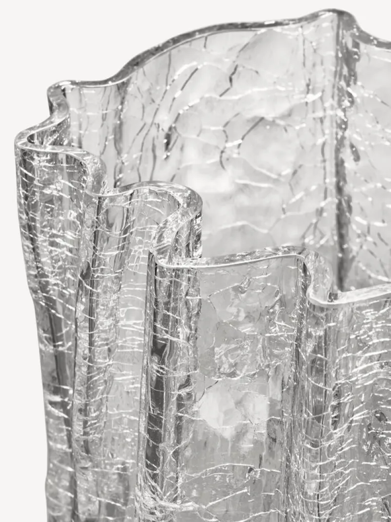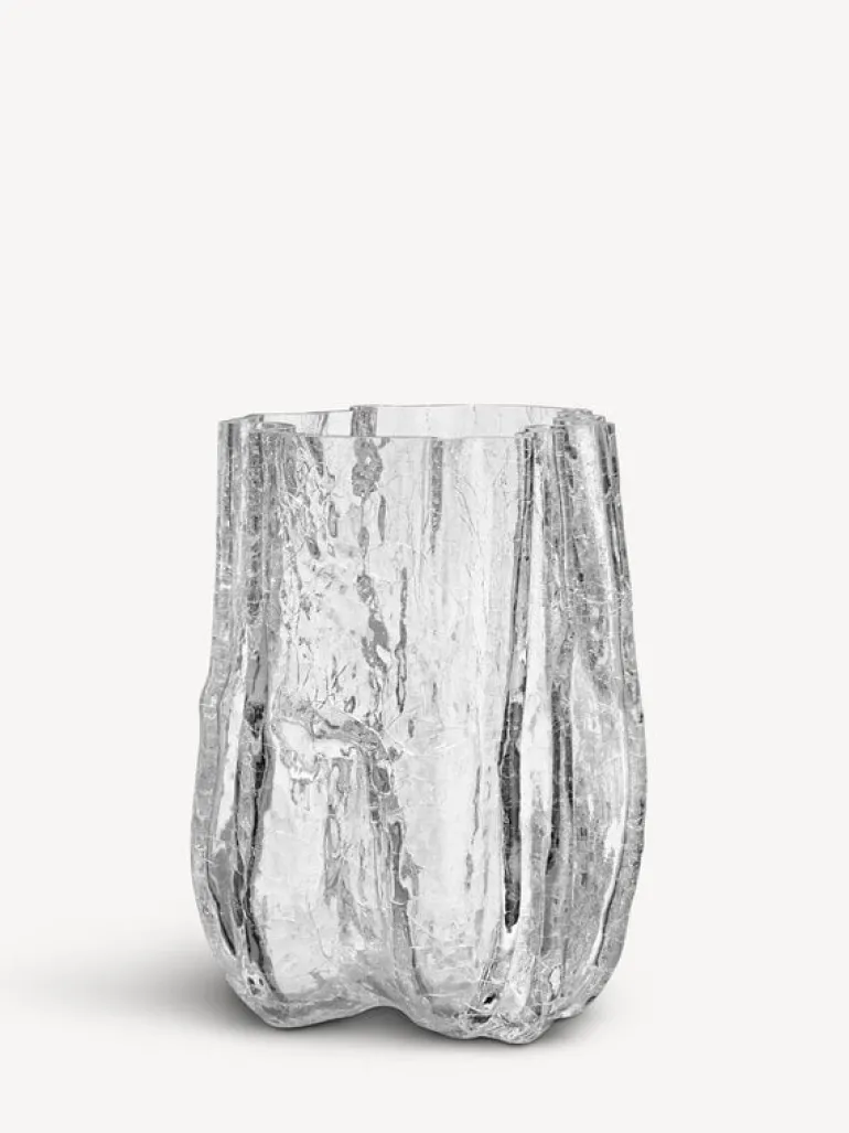 Kosta Bodas vas Crackle förvandlar ofullkomligheter till önskade särdrag. Glasvasen, som formgivits av Åsa Jungnelius, har en yta som ser ut att ha gått sönder och splittrats. Och visst, Crackle har framställts med hjälp av en gammal teknik där man doppar det heta glaset i iskallt vatten. Slutresultatet är sprickor och bristningar i ytan på glaset – därav namnet på kollektionen, Crackle. Sprickornas variationsrikedom ger varje vas sin egna, helt unika look, olik alla andra.