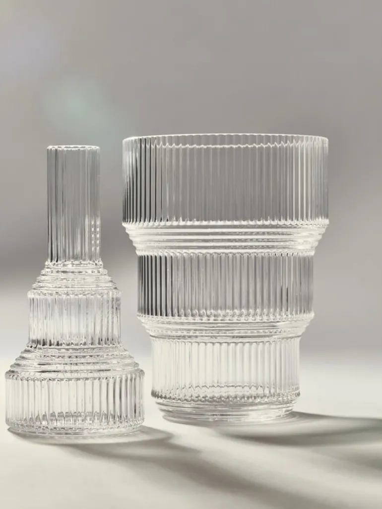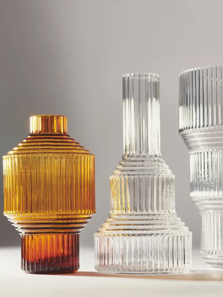 Tulpanvasen Pavilion från Kosta Boda visar ett geometrisk samspel mellan vertikala och horisontella ränder som ger vasen en helt unik stil. Pavilion-kollektionen, som har tagits fram i samarbete med svenska designstudion Front, bjuder in folk att experimentera och skapa fantasifulla blomsterarrangemang. Prova att mixa och matcha starka färger, eller lämna vasen tom om du föredrar det – de vackra nivåskillnaderna och formerna på vasen Pavilion är ju en fröjd för ögat i sig självt!