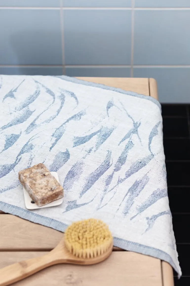 Lapuan Kankurit Aallokko bastuöverdrag, 46 x 60 cm, linne – blått