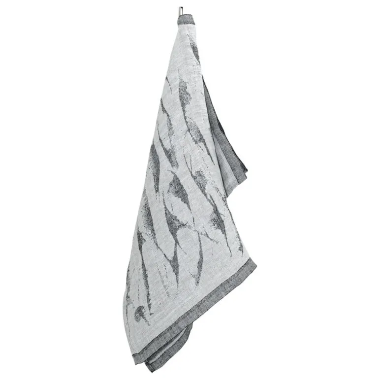 Handduken Aallokko i linne, designad av Reeta Ek för Lapuan Kankurit, har ett vackert mönster som föreställer vågor. Det är också därifrån handdukens namn kommer: Aallokko är finska för “vågor” eller “svall”.