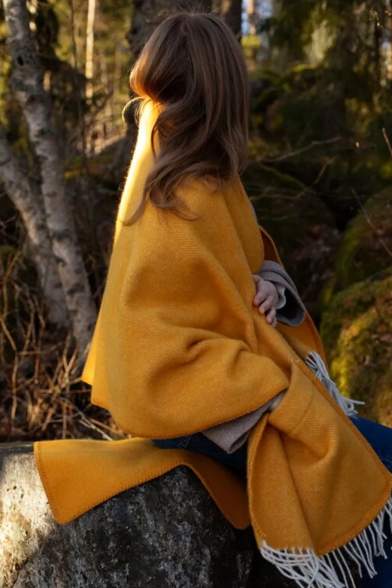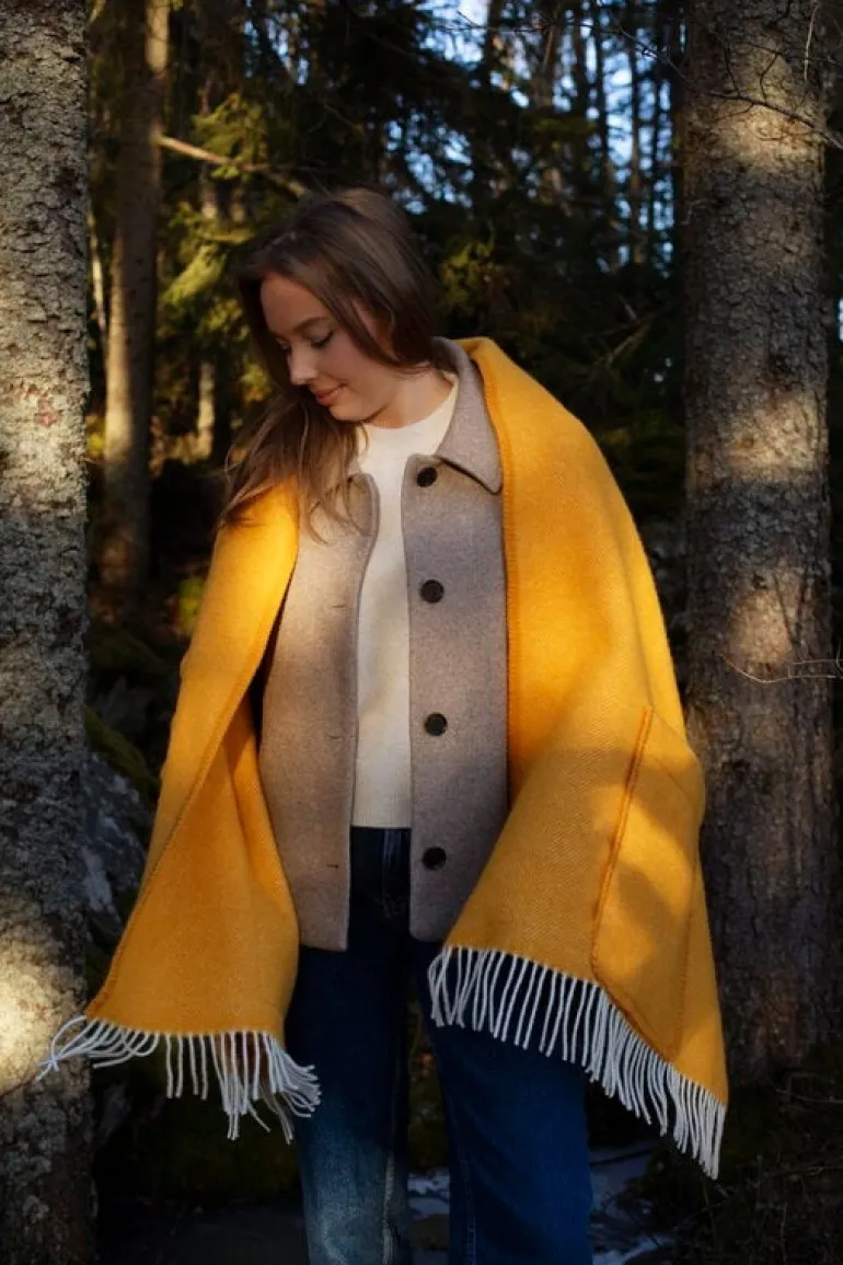 Ficksjalen Arvo från Lapuan Kankurit håller dig varm och bekväm, oavsett om du är hemma, ute på terrassen eller ute i naturen. Den är tillverkad i 100 % ull och har en rogivande naturfärgad ton – den varma orangea färgen på den här halsduken är resultatet av färgning med kaffe. De stora fickorna är perfekta för att värma dina händer eller för att förvara din telefon, nycklar och andra småsaker. Den eleganta ficksjalen är också ett snyggt sätt att hålla dig varm vid mer formella tillfällen.