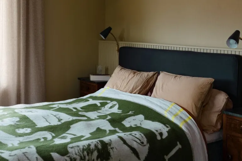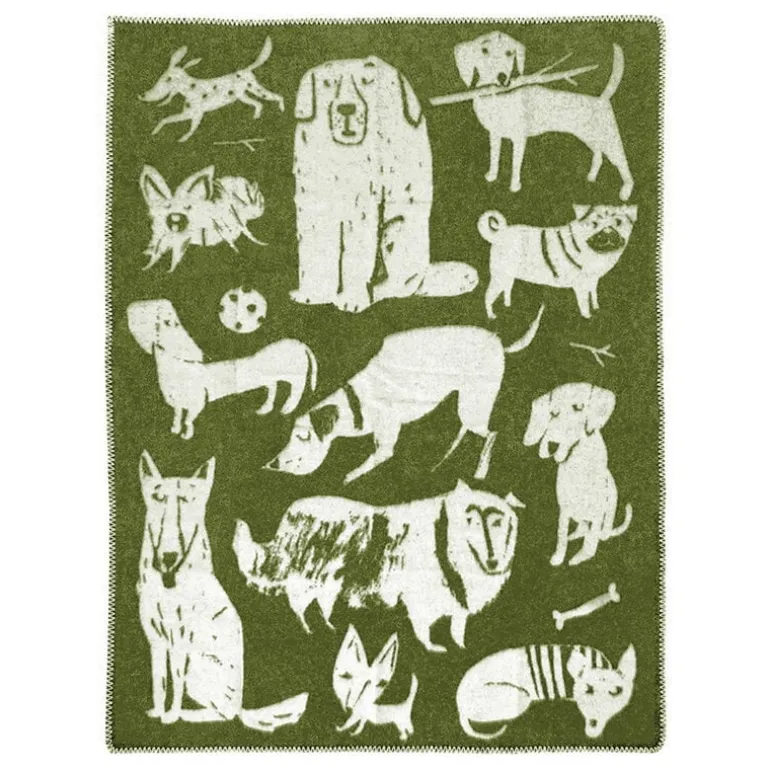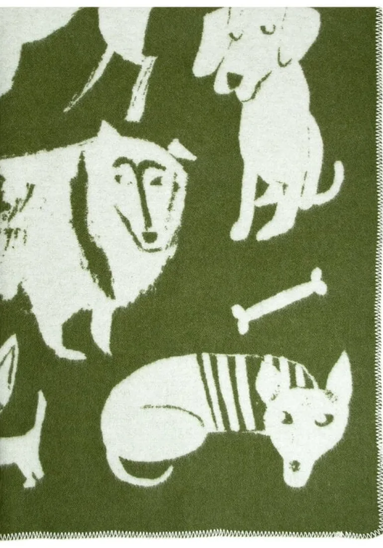 Filten Koirapuisto från Lapuan Kankurit pryds av en glad hundflock som ritats av den finske illustratören Matti Pikkujämsä. Koirapuisto betyder ”hundpark” på finska.