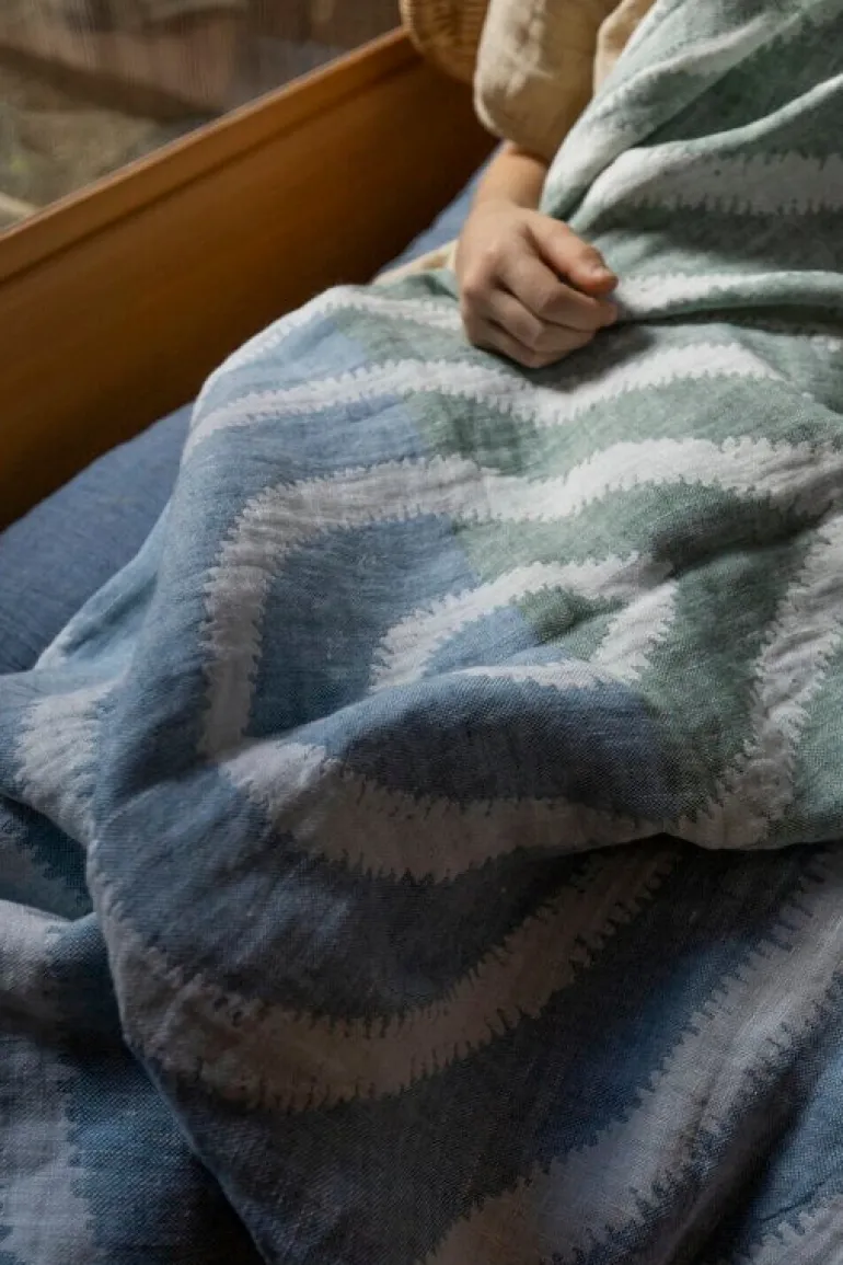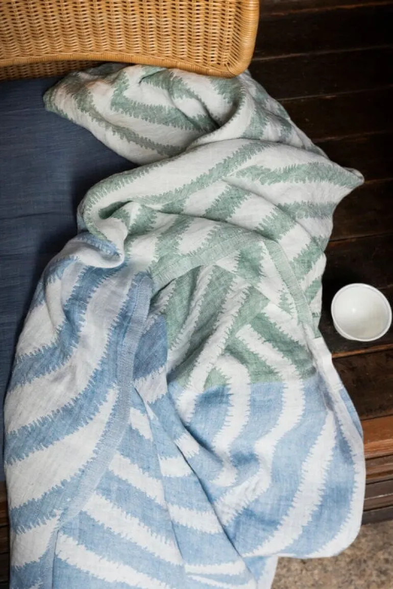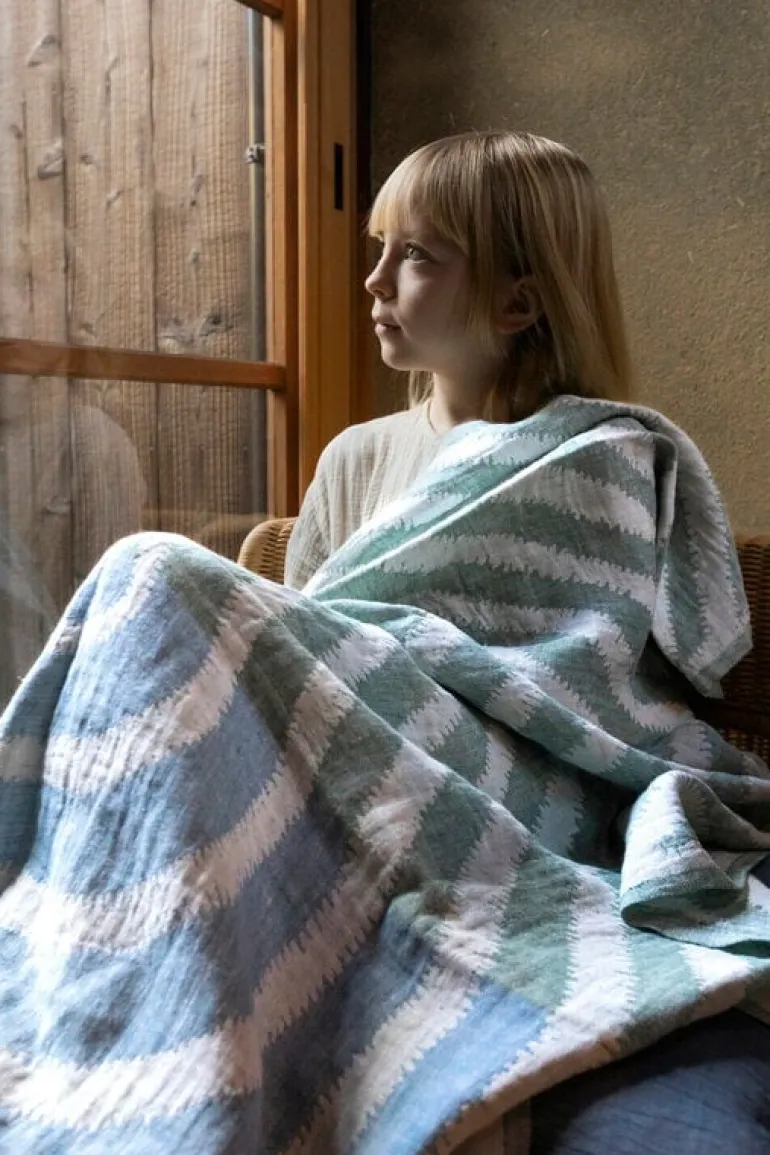 Metsälampi-tyget tillverkas i Finland av tvättat europeiskt linne, ett lättskött material med en naturligt lättsam framtoning. Du behöver inte stryka filten – de små rynkorna och vecken ger den en charmigt avspänd och naturlig look.