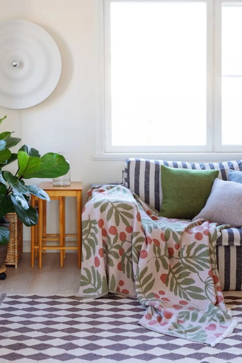 Pihapuu-filten är tillverkad av en fin blandning av merinoull och bio-ekologisk bomull, och har en textur som känns underbar även mot bar hud. Filten är vävd i Lapua, Finland. Visste du att varumärket Lapuan Kankurit bokstavligen betyder ”vävare i Lapua”?