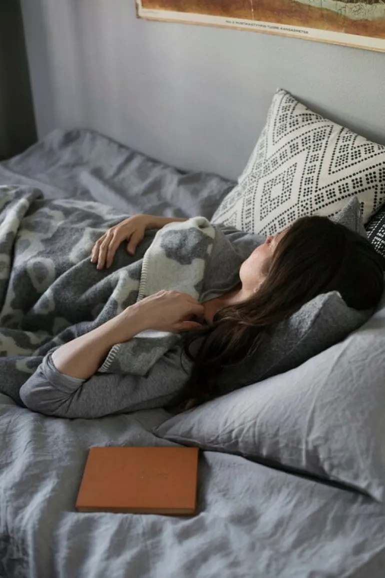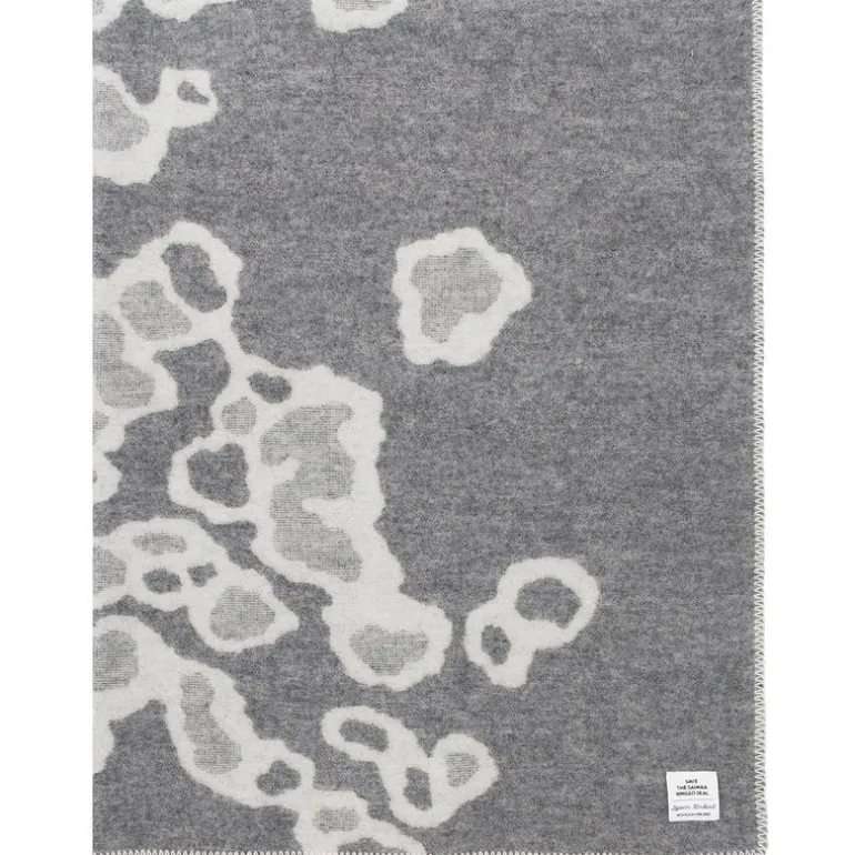 Saimaannorppa-ullfilten från Lapuan Kankurit är beklädd med Kaarina Tiainens grafiska vit-gråa mönster som föreställer fläckarna på Saimens ringprydda sälar, en utrotningshotad art av sälar som endast finns i Saimensjön i Finland. Den härligt mjuka filten har sydda kanter och tillverkas av mulesingfri nyzeeländsk ull i Lapuan Kankurits syfabrik i Finland.