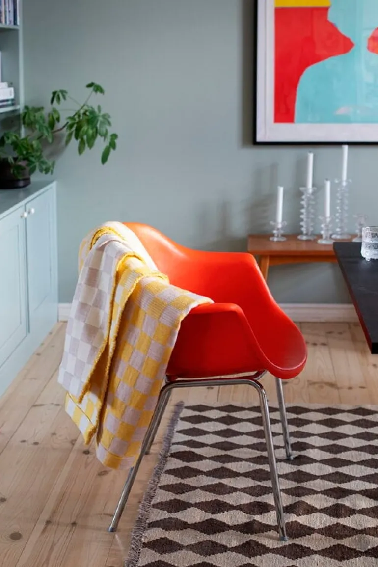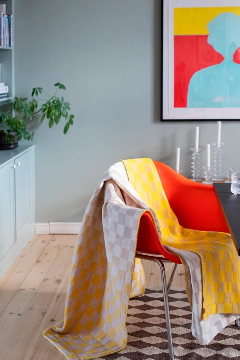 Filten Shakki från Lapuan Kankurit är dekorerad med ett grafiskt rutmönster, formgivet av Ida Korrström. Mönstret liknar layouten på ett schackbräde – ”shakki” betyder schack på finska. Den charmiga filten är tillverkad av en blandning av merinoull och bomull, som känns underbart mjuk och skön mot huden. Den eleganta filten är ljuvlig att dra över sig varje gång man vill koppla av en stund på soffan, eller så kan du svepa in dig i den under kyliga sommarkvällar ute på terrassen.