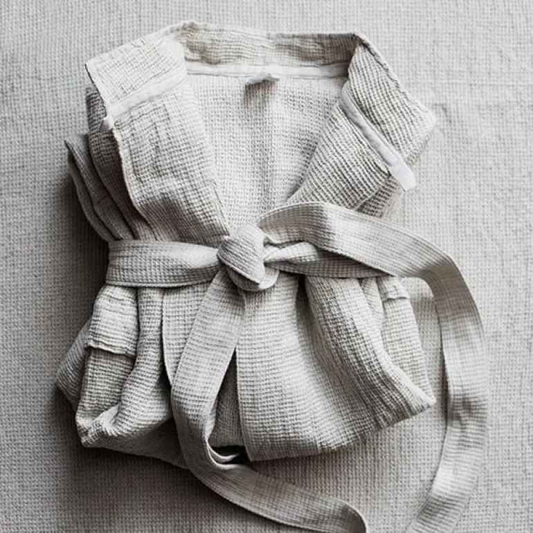 Terva-badrocken av Lapuan Kankurit är perfekt att bära efter bastun eller badet. Badrocken har en ledig, lös passform.