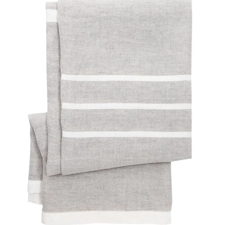 Linneduken är dekorerad med ett klassiskt, minimalistiskt randigt mönster som är designat av Anu Leinonen. Tack vare sin stora storlek, materialet som tål tvättmaskin och det modesta mönstret, är bordsduken Usva väldigt mångsidig. Förutom för bordsdukning passar den även väl som en tunn filt för en tupplur eller ett underlag på stranden, eller till och med som en vacker och neutral linnegardin. Den randiga linneduken är vävd på väveriet Lapuan Kankurit i Finland.