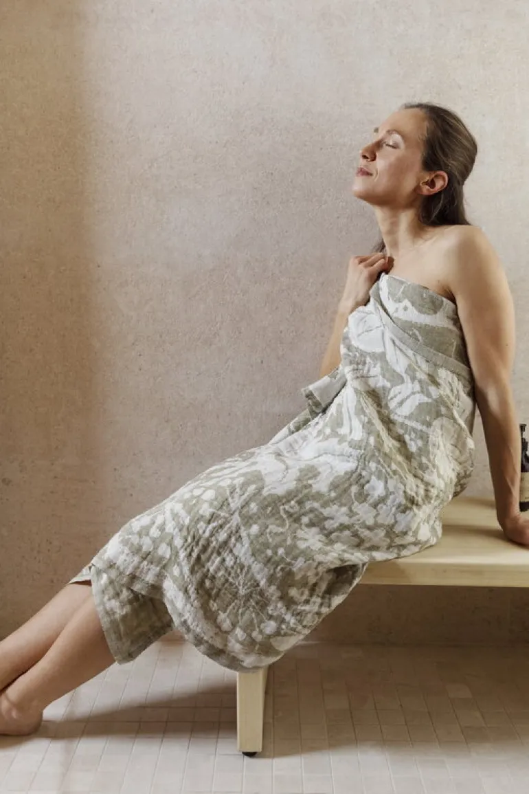 Villiyrtit jättehandduk från Lapuan Kankurit är det perfekta valet för en sommardag. Svep in dig i den stora handduken efter ett dopp eller använd den som picknickfilt på stranden eller i parken. Jättehandduken är tillverkad av linne som torkar super snabbt och känns behagligt mot huden. Den stiliga handduken är prydd med ett rikt, flödande mönster som visar upp delikatesserna från den finska naturen – villiyrtit är finska för vilda örter. Mönstret speglas på andra sidan i motsatta färger. Handduken är vävd i Finland vid Lapuan Kankurits egna väveri.