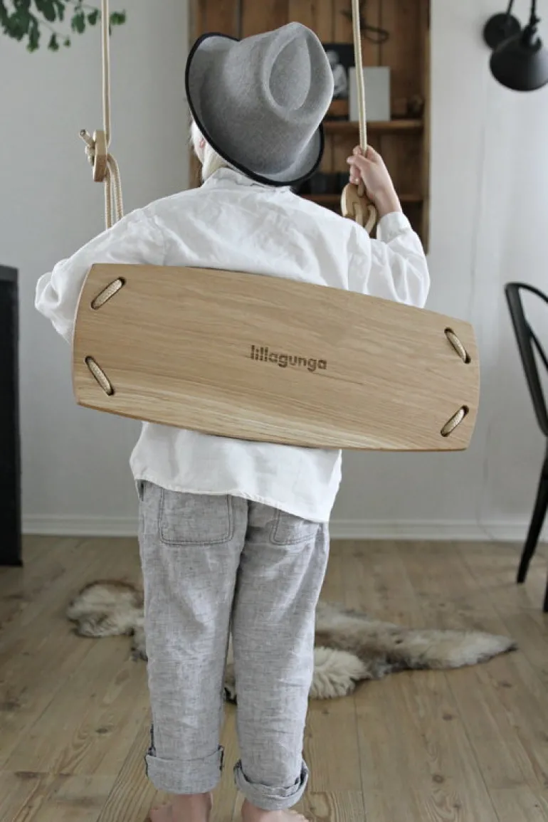 Gungan Grand från Lillagunga är en nyskapad version av den klassiska trägungan, speciellt designad för större barn och vuxna. På Lillagunga är man övertygad om att förutom att leka och ha kul, så är gungandet också ett perfekt sätt att koppla av, hålla sig ung och leva i nuet. Den rymliga Grand-gungan är tillverkad i stadigt, massivt trä, och är perfekt till bostaden, kontoret, baren eller terrassen. Den patenterade mekanismen för att sätta fast repen och justera sitsens höjd gör att den är både lätt och säker att använda. Sitsen har fem fördjupningar som ökar friktionen och gör den bekvämare. De eleganta Lillagunga-produkterna har designats och tillverkats i Finland och är gjorda för att hålla länge.