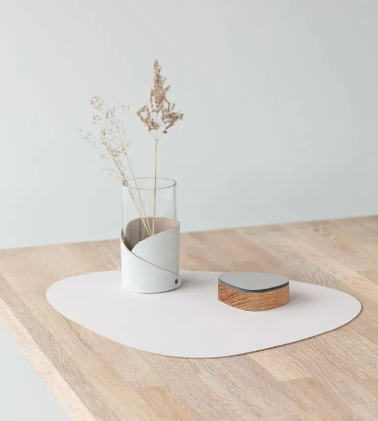 Försköna bordsdekorationerna med Lind DNA:s bordstablett Curve! Curve-tabletten, som är framställd av återvunnet läder och naturgummi, sprider en aura av tidlös elegans runt matbordet, oavsett om det handlar om vardagsfrukostar eller festmiddagar. Bordstabletten finns i flera dämpade och jordnära färger, så att du enkelt kan skapa ett sofistikerat arrangemang för varje tillfälle.