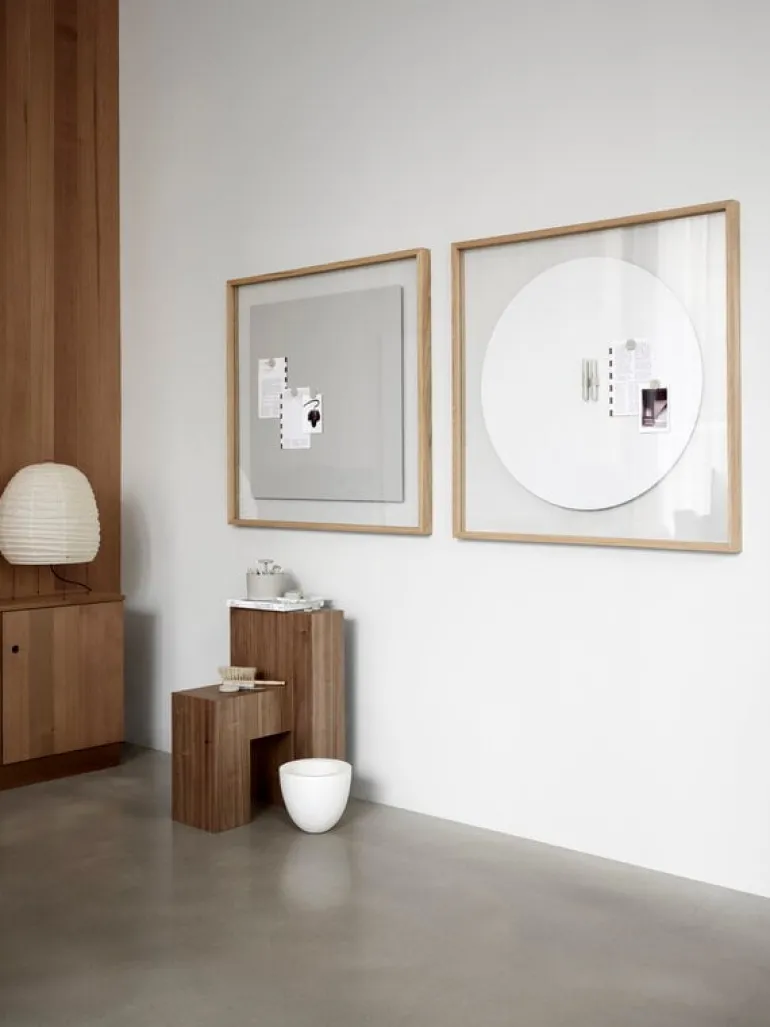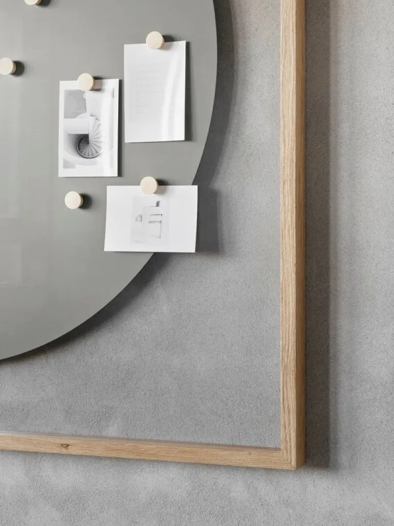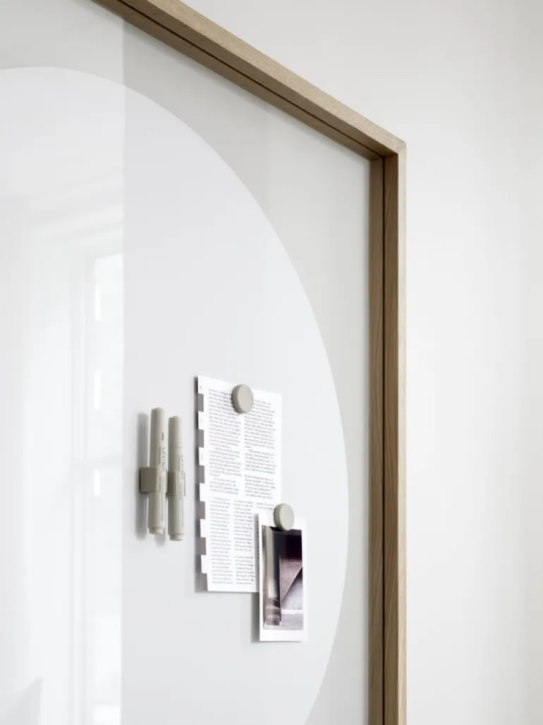 Lintex skrivtavla A01 i glas, designad av Afteroom, utmanar vår syn på den traditionella whiteboardtavlan med dess sofistikerade unika design. Den moderna anslagstavlan består av en enkel ekram och en glasskiva med en magnetisk rundad form placerad i mitten – kompositionen ser nästan ut som en abstrakt målning eller en konstaffisch. Anslagstavlan A01 är tillverkad i tempererat glas med låg järnhalt, som är helt genomskinligt utan den grönaktiga nyansen som finns i vanligt glas – därför ser den geometriska kreationen ut som att den flyter fritt inom ramarna. Tack vare den unika designen är A01-glastavlan även perfekt för hemmakontoret.