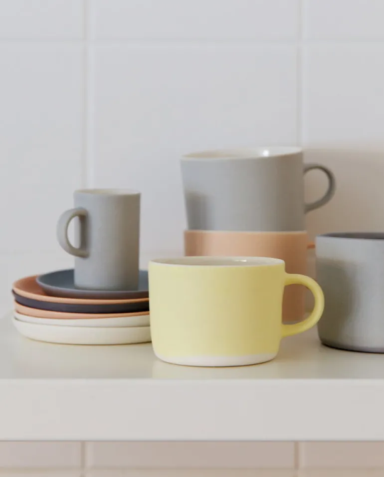 Kaffekoppen Kahvi är perfekt till morgonkaffet, precis som namnet anger: Kahvi betyder “kaffe” på finska. Kahvi-koppen rymmer 1 dl, som även är en idealisk storlek när du ska servera te och andra varma drycker. Keramikmuggen, som formgivits av Nathalie Lautenbacher, har en härlig matt textur och en mild färgton, som skapar en harmonisk och inbjudande atmosfär. Insidan av koppen är glaserad.