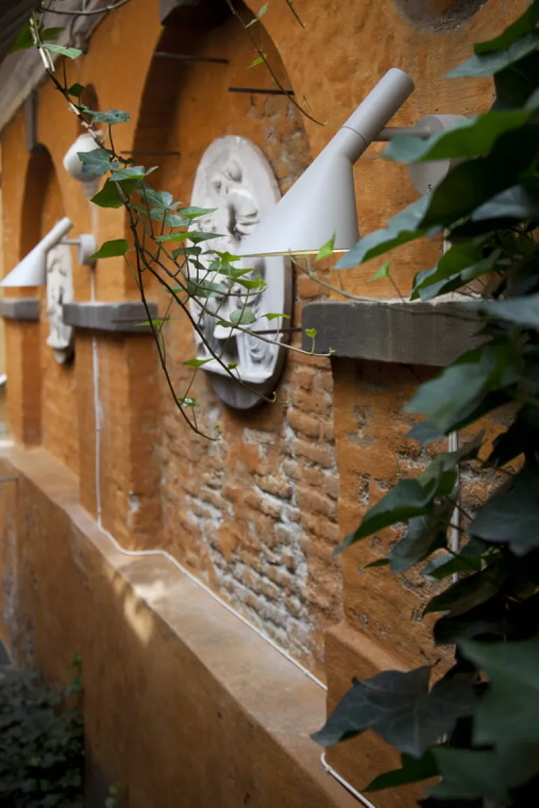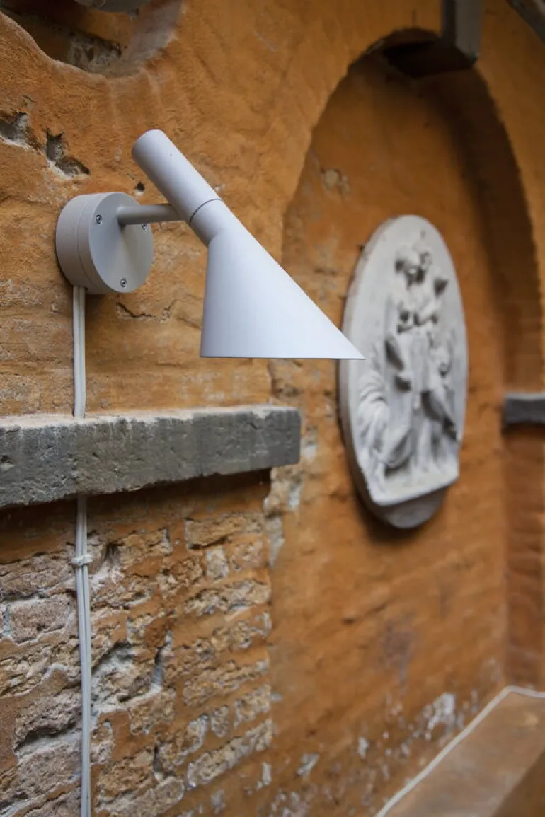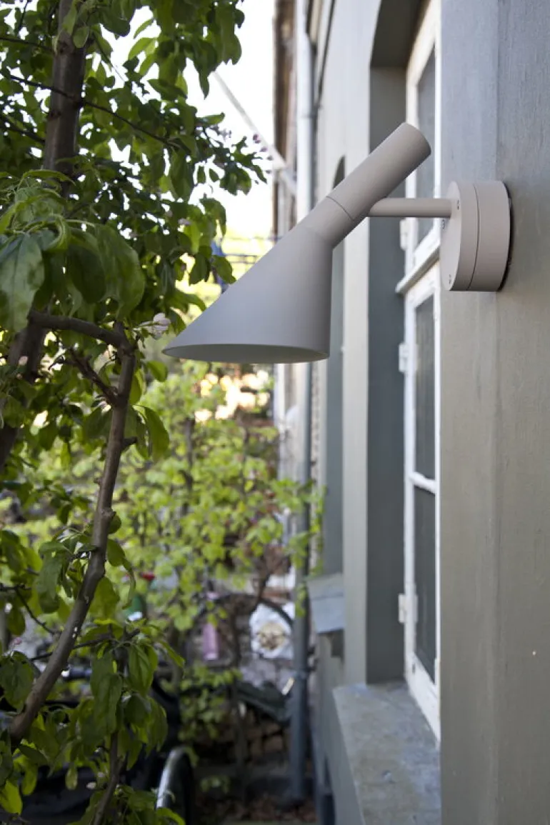 Vägglampan AJ 50 av Louis Poulsen är en utomhusversion av Arne Jacobsens AJ-lampa. I AJ 50 ingår en effektiv LED-lampa med kapslingsklass IP65, som är perfekt att använda som belysning till entrén, balkongen eller altanen. Den ikoniska utformningen hos Louis Poulsens AJ-kollektion kom till år 1957 när den legendariska danska arkitekten Arne Jacobsen designade SAS Royal Hotel i Köpenhamn, inklusive inredning och möbler. Den tidlösa lampan har en skulpturliknande form som skapats av grundläggande, geometriska former: en konformad skärm med en enkel cylinderfot. Den justerbara skärmen, som är vitmålad på insidan, ger i från sig ett mjukt, behagligt sken som inte bländar. AJ-kollektionen har kommit att bli en dansk designikon och ett av de mest älskade designverken som skapats av Arne Jacobsen.