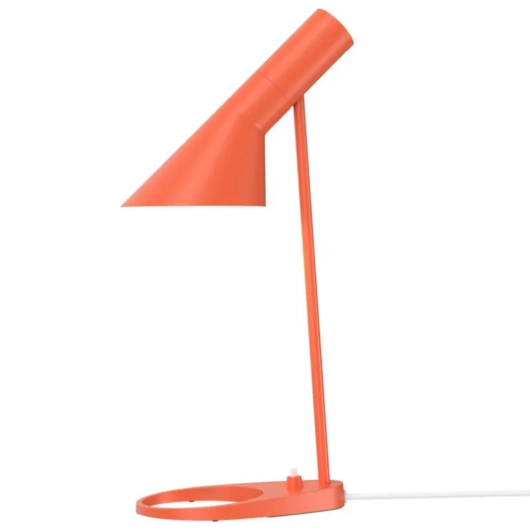 AJ Mini bordslampan av Louis Poulsen är en mindre version av Arne Jacobsens klassiska design, den passar perfekt vid nattduksbordet eller fönsterbrädet. Den ikoniska utformningen hos Louis Poulsens AJ-kollektion kom till år 1957 när den legendariska danska arkitekten Arne Jacobsen designade SAS Royal Hotel i Köpenhamn, inklusive inredning och möbler. Den tidlösa lampan har en skulpturliknande form som skapats av grundläggande, geometriska former: en konformad skärm med en enkel cylinderfot. Den justerbara skärmen, som är vitmålad på insidan, ger i från sig ett mjukt, behagligt sken som inte bländar. En smal arm och en lätt fot gör den här klassiska AJ-lampans stil komplett.