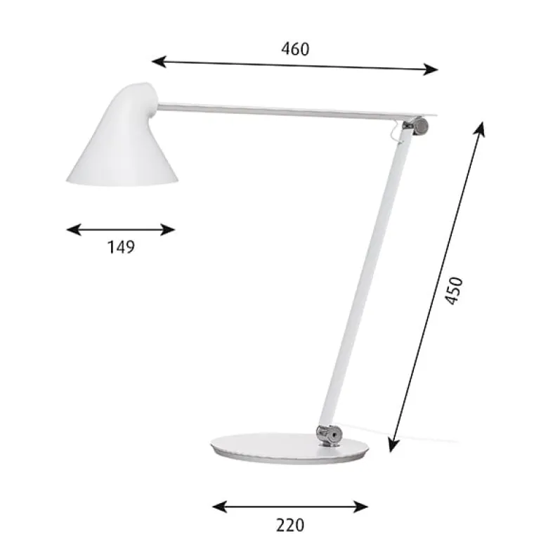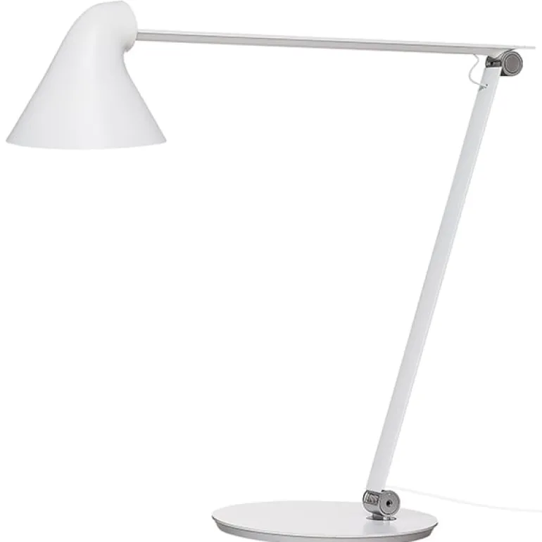 Louis Poulsens bordslampa NJP är en modern tolkning av klassiska arkitektlampor. Den enkla och smarta designen gör NJP behaglig och lätt att använda: två leder i benet gör att lampan kan justeras utan ansträngning och strömbrytaren är bekvämt placerad i basen av skärmen. NJP ger både direkt och rumsligt ljus tack vare skärmens skorstensliknande form – den öppna toppen låter även ljuset lysa genom den övre delen av benet och håller LED-lamporna svala. Dessutom har den minimalistiska lampan en timerfunktion och kan ställas in så att den stängs av efter 4 eller 8 timmar. NJP är en perfekt bordslampa för alla typer av arbete och uppgifter.