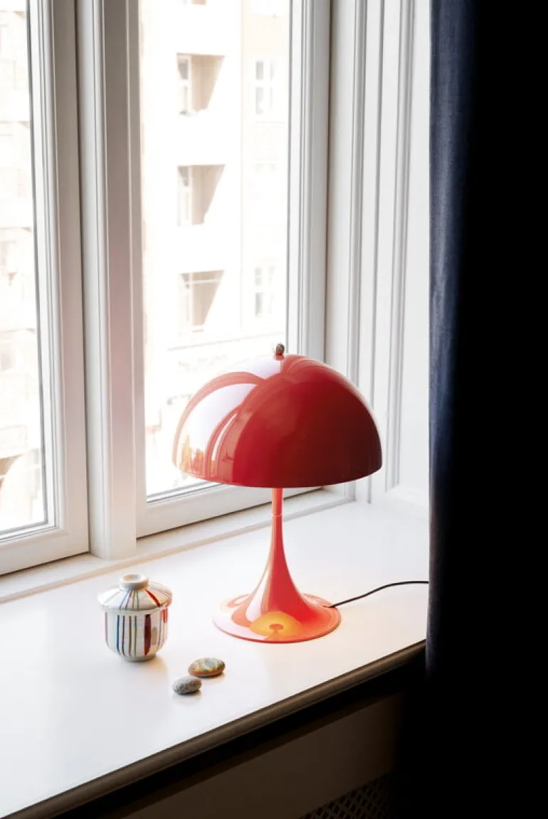 Panthella 250 från Louis Poulsen är en mindre version av den ikoniska bordslampan Panthella. Verner Panton designade Panthella 1971, och den såldes med en vit fot och en opalglasdiffusor. I takt med att tekniken har utvecklats har Louis Poulsen kunnat uppfylla Pantons önskan om att tillverka den runda skärmen även i metall. Med sin inbyggda LED-enhet ger Panthella 250 ett behagligt ljus som reflekterar vackert från den trumpetformade foten. Tack vare den mindre storleken är designklassikern lika mångsidig som någonsin.