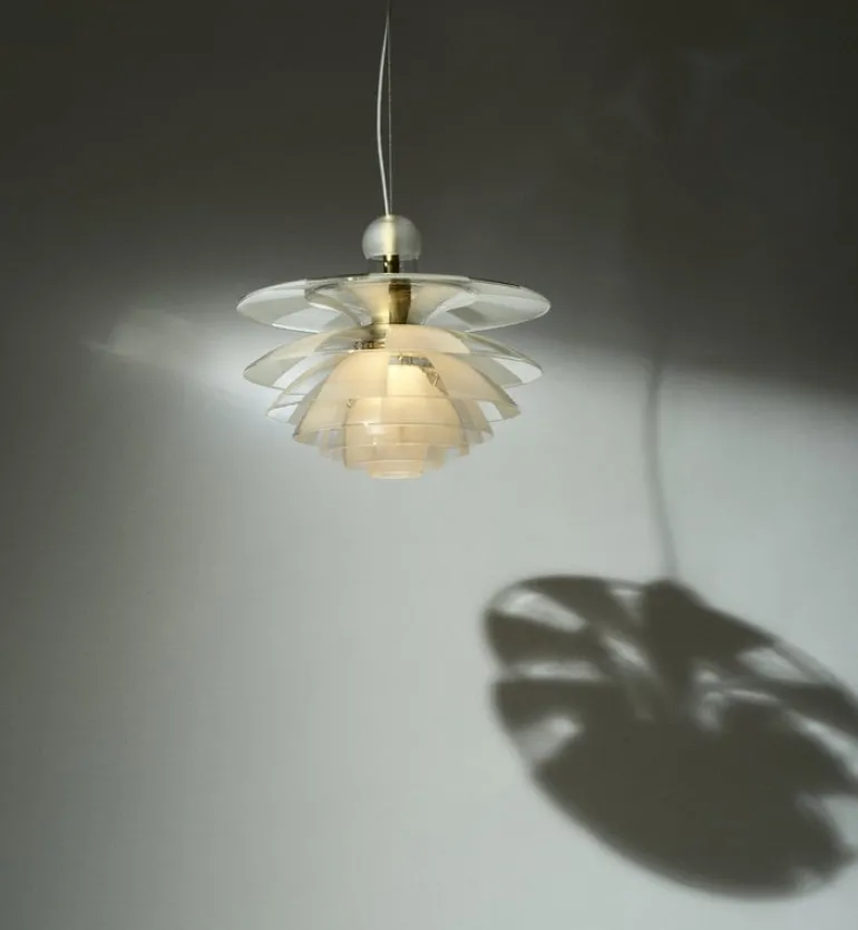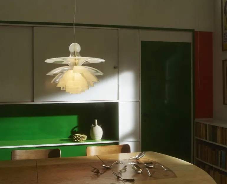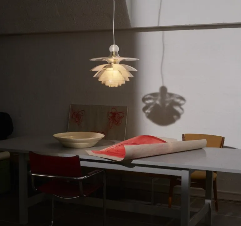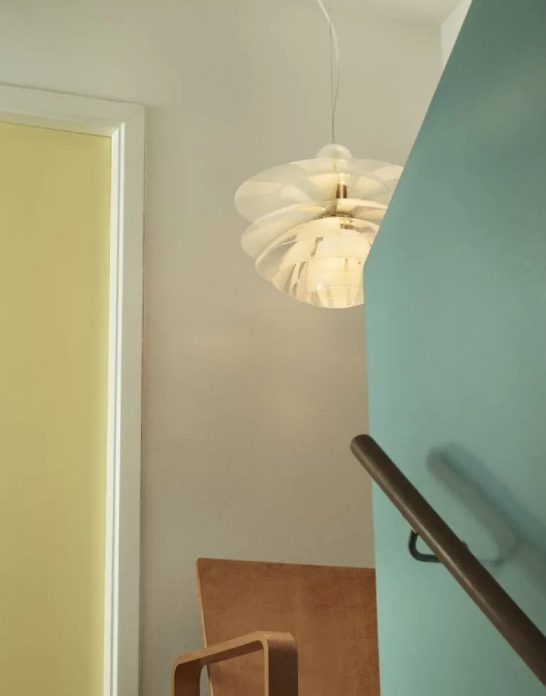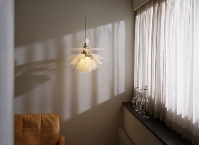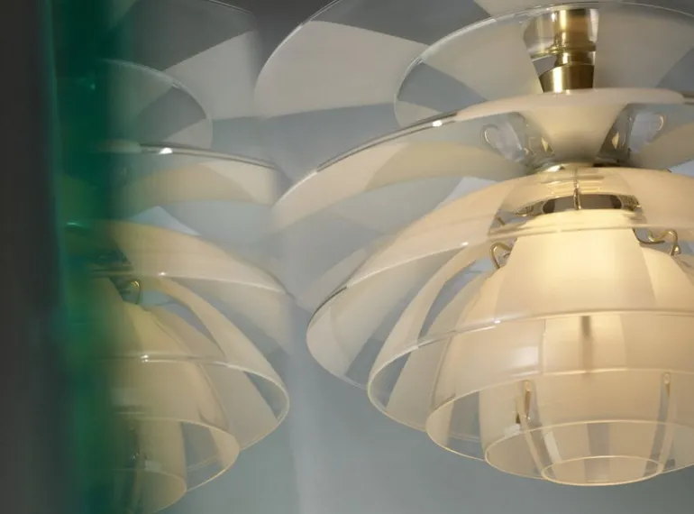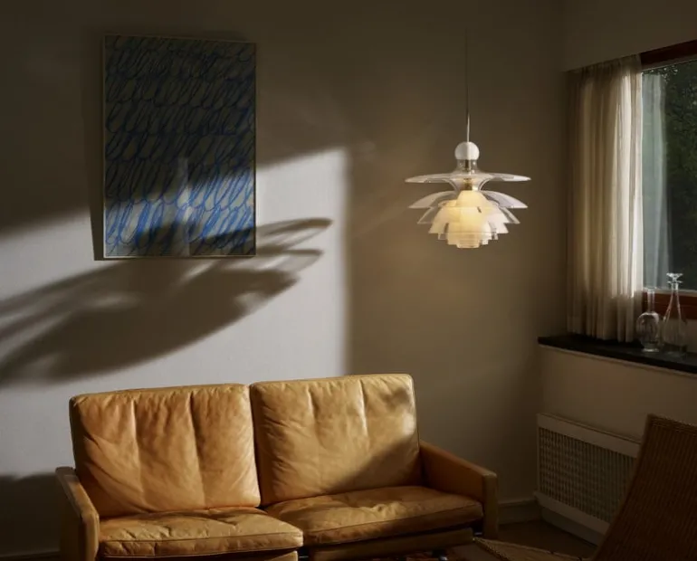 Louis Poulsens pendellampa PH Septima är en hisnande armatur, skapad av den legendariske formgivaren Poul Henningsen mellan 1927–1931. Den exceptionella formen har inspirerats av Henningsens innovativa treskärmssystem från 1920-talet, med fyra extra lager. PH Septimas sju skärmar, gjorda av italienskt borosilikatglas, är ett samspel av frostade och klara sektioner som skapar lampans magiska look, men som även ger ett lugnande och jämnt fördelat ljus. Mässingsdetaljerna ger pendellampan en elegant och sofistikerad finish.
