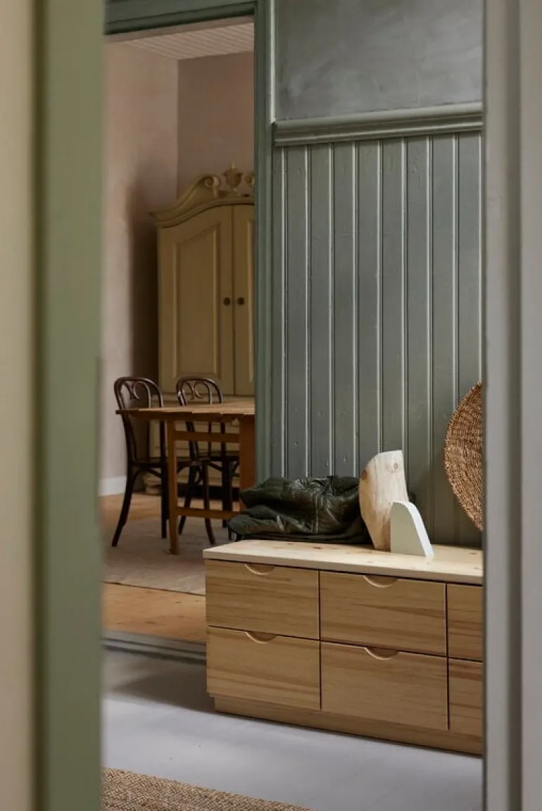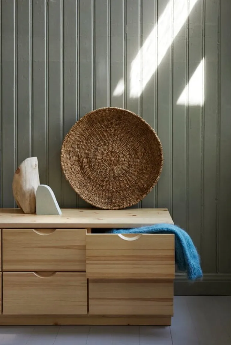Classic-byrån är tillverkad av massiv, finsk furu, och genom att användas får den en vacker patina och en underbar honungsliknande färgton som växer fram gradvis. Tack vare det gedigna materialet kan du till och med sitta på den – kanske är det därför som den är särskilt populär som förvaringsmöbel i hallar och barnrum. Den låga byrån kan även användas som tv-bänk.