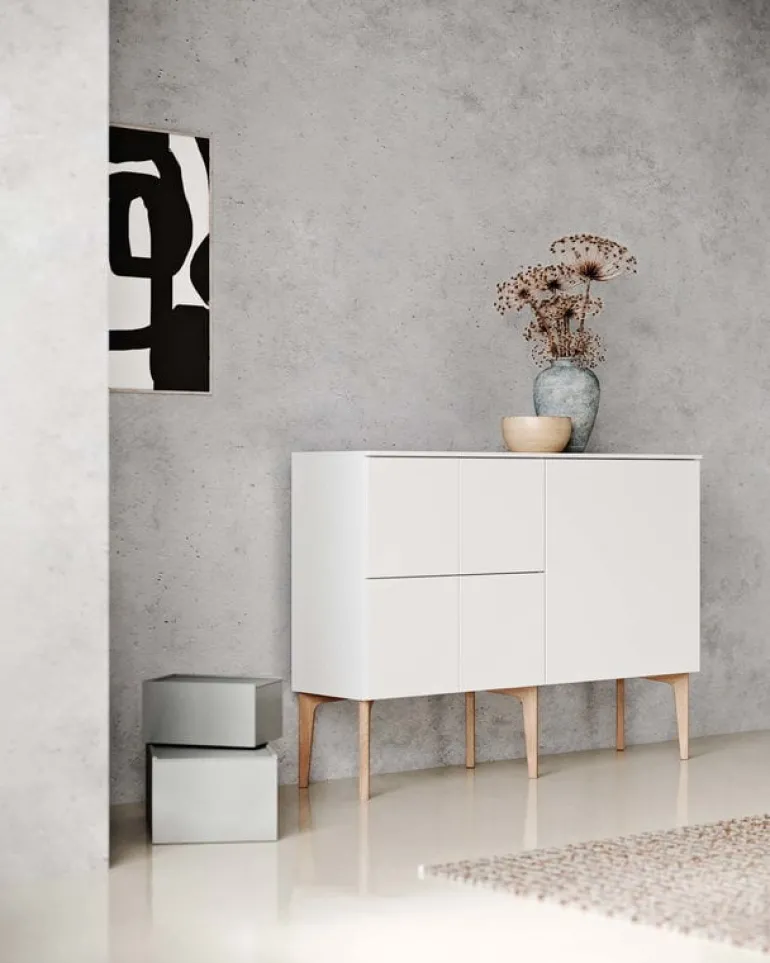 Fuuga från Lundia är en smart och snygg förvaringslösning för alla typer av utrymmen. Fuuga har en silkeslen finish som fingeravtryck inte fäster på, vilket gör den eleganta möbeln ännu mer hållbar och passande för daglig användning. Fyra mindre sektioner och skåpets justerbara hylla gör det enkelt att organisera, medan luckorna ger hela möbeln en stilren och harmonisk look. Fuuga består av två moduler och står på en stilren bas av naturell ek.