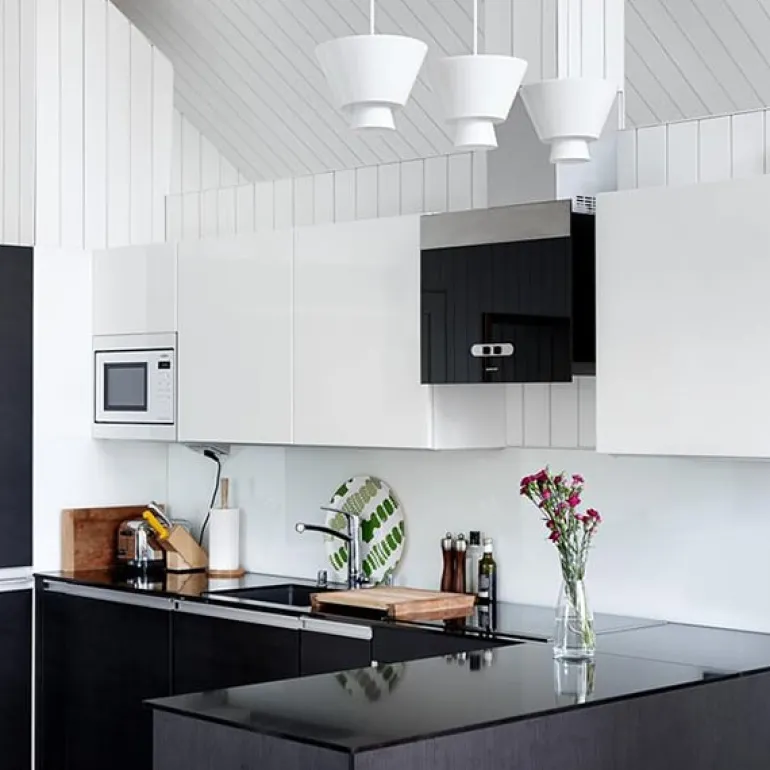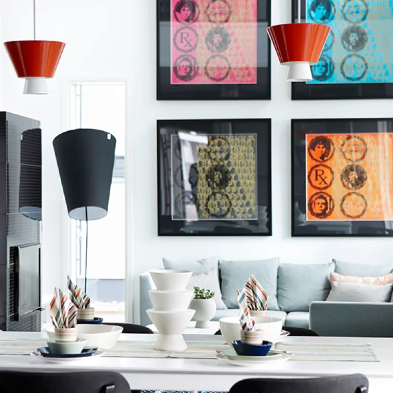Lundias pendellampa Loiste består av en lätt stålram och två tygklädda skärmar som kastar ljus både nedåt och uppåt. Loiste har en design som liknar den tygklädda pendellampan Hehku, men den är mer kompakt och materialet består av målat aluminium och stål. Den mindre skärmen är vit och den större finns i tre färger: svart, vit och sandfärgad. Pendellampan Loiste är designad av Jukka Korpihete och är gjord för hand i Finland.
