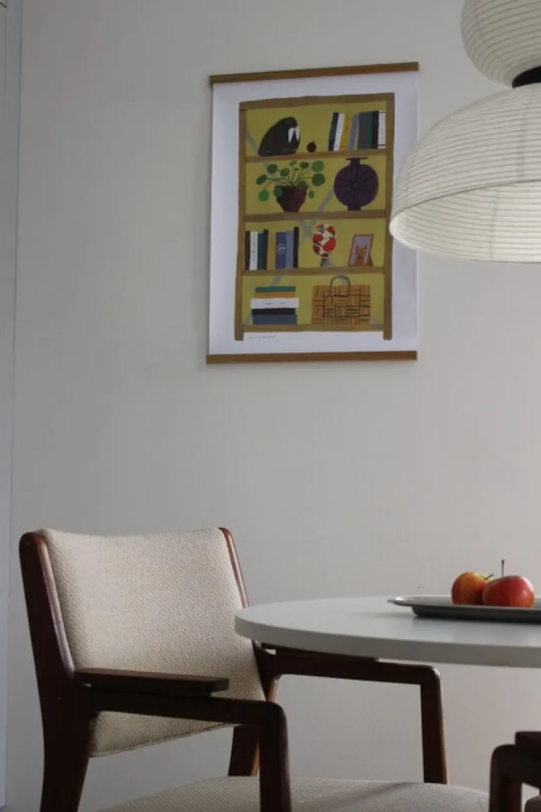 Lundia-postern av Matti Pikkujämsä blir till ett kärt inslag i varje interiör och lyfter fram en av finsk designs trotjänare – det klassiska hyllsystemet Lundia. Konstnären Matti Pikkujämsäs illustration hyllar Lundia-hyllornas olika användningsområden i en varm, engagerande stil och ger en inblick i olika epoker av finsk design. Den här postern tjänar inte bara som färgklick och en dos nostalgi på väggarna hos Lundia-fantaster, utan är också en hyllning till det finska trähantverket. Lundia-postern trycks på kvalitetspapper på 160 gram i Finland.