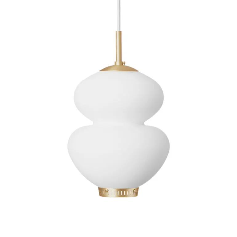 Peanut-ljuskällan är handgjord av opalvitt glas och avslutas med charmiga detaljer i mässing. De 3 lagren av glas i lampskärmen resulterar i ett jämnt, mjukt och atmosfäriskt ljus, vilket gör Peanut-ljuskällan idealisk som en sovrum- eller vardagsrumslampa. Dessutom ser taklampan vacker ut ovanför matbordet, antingen individuellt eller som en grupp av flera ljuskällor i olika storlekar.